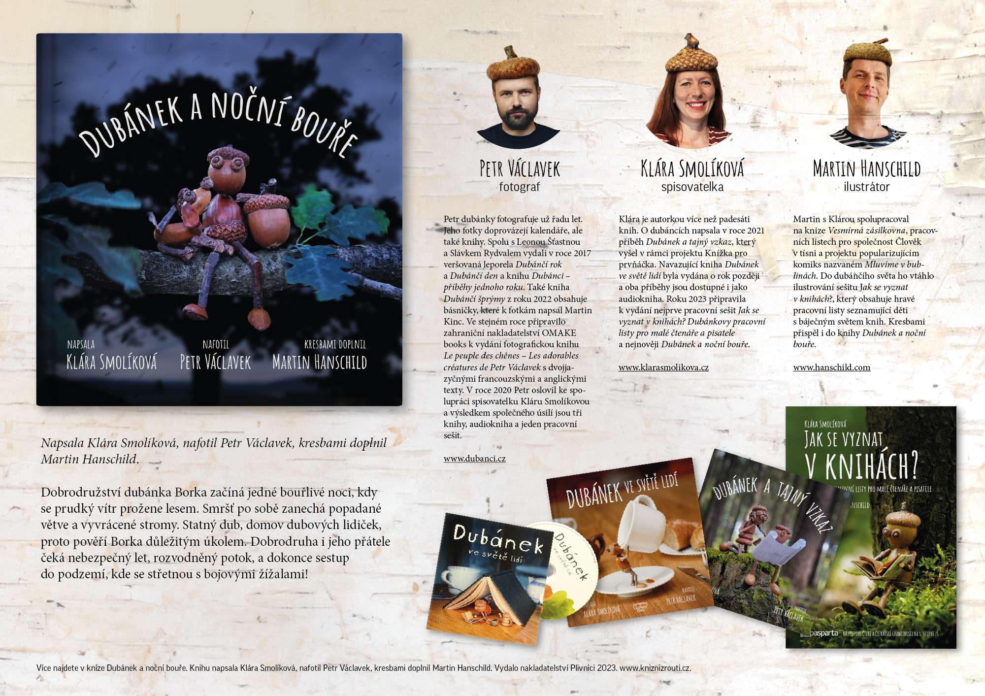 S novou knížkou Dubánek a noční bouře jsme připravili s Petrem Václavkem druhou dubánčí výstavu. Na panelech najdete Petrovy fotky, které vytvořil speciálně pro tento příběh, doprovodné kresby Martina Hanschilda a kratičké ukázky děje pro dokreslení atmosféry. Stejně jako v knížce jsou novinkou komiksově laděné stránky.
