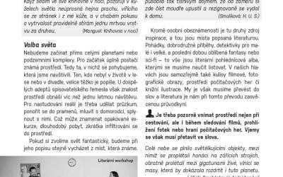 Kromě osobní obeznámenosti je tu druhý zdroj inspirace, a tou jsou místa popsaná literaturou. Pohádky, dobrodružné příběhy, detektivky pro malé i velké, a poslední dobou oblíbená fantasy nebo sci-fi – to vše jsou literární pohlednicová alba, kterými se musíme naučit listovat. V našich hlavách jsou samozřejmě také kulisy filmové, fotografické obrazy, prostředí počítačových her či knižní ilustrace. My je však musíme převést do slov a literatura je nám při tomto převodu zasvěcenou průvodkyní.