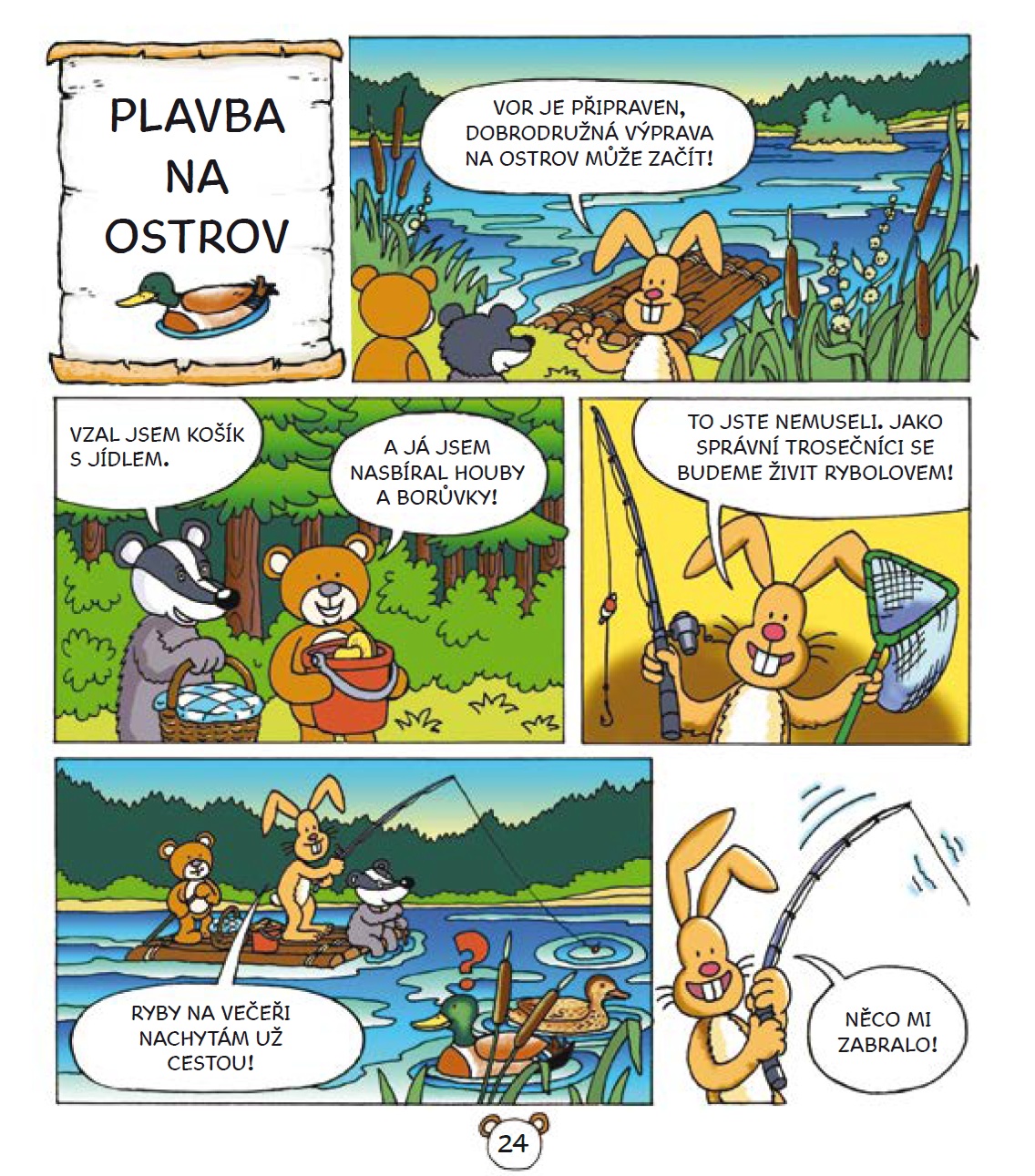 S Lupem, jezevcem, zajícem Bonifácem, veverkou Juliánou a havranem Filipem mohou malí čtenáři zažívat veselá dobrodružství po celý rok. Příběhy sledují cyklus ročních období a proměny přírody. Zvířecí kamarádi, podobně jako holčičky a kluci, rádi tráví čas venku, baví je hrát si u potoka, skákat do spadaného listí, dovádět ve sněhu nebo stanovat na ostrově uprostřed rybníka.
