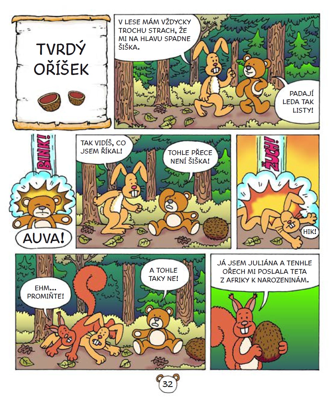 Jestliže se pozorně podíváte na komiksovou postavu medvídka Lupa, možná vás, jako mne přepadne intenzivní pocit déjà vu. Medvídek je antropomorfním ztělesněním plyšového kamaráda, se kterým jste si jako děti hrály a možná ho ještě zcela omšelého, oslintaného a rozpáraného (tajně) schováváte ve skříni... Nebýt havrana Filipa, dal by se komiks Medvídek Lup přirovnat ke kultovnímu Čtyřlístku. Truhlář jezevec má, stejně jako Myšpulín, hlavu plnou nápadů, zlepšováků a vynálezů, přičemž parní necky atakují přímo podžánr sci-fi steampunk. Bravo! Zajíc Bonifác mi v mnoha paralelách evokuje Pinďu a veverka Juliána velice ráda vaří, jako Fifinka... Medvídek Lup a jeho kamarádi jsou mimořádně hravou a morálně absolutně čistou pohádkovou knihou, jež dětskou duši nevystavuje žádné zjevné ani podprahové indoktrinaci. Kláře mnohokráte děkuji za práci na poli dětské pregramotnosti, čtenářské gramotnosti a její osobité publikace, jež rozvíjí obrazotvornost a nenásilně otevírají brány do říše fantazie, které právě televize uzamyká.