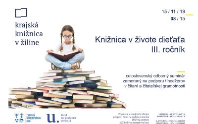 editCeloslovenský odborný seminár zameraný na rozvoj čítania a čitateľskej gramotnosti tínedžerov alebo ako prebudiť „násťročnú“ tínedžerskú čitateľskú dušu. 15. novembra 2019 od 08:15 v Krajskej knižnici v Žiline.