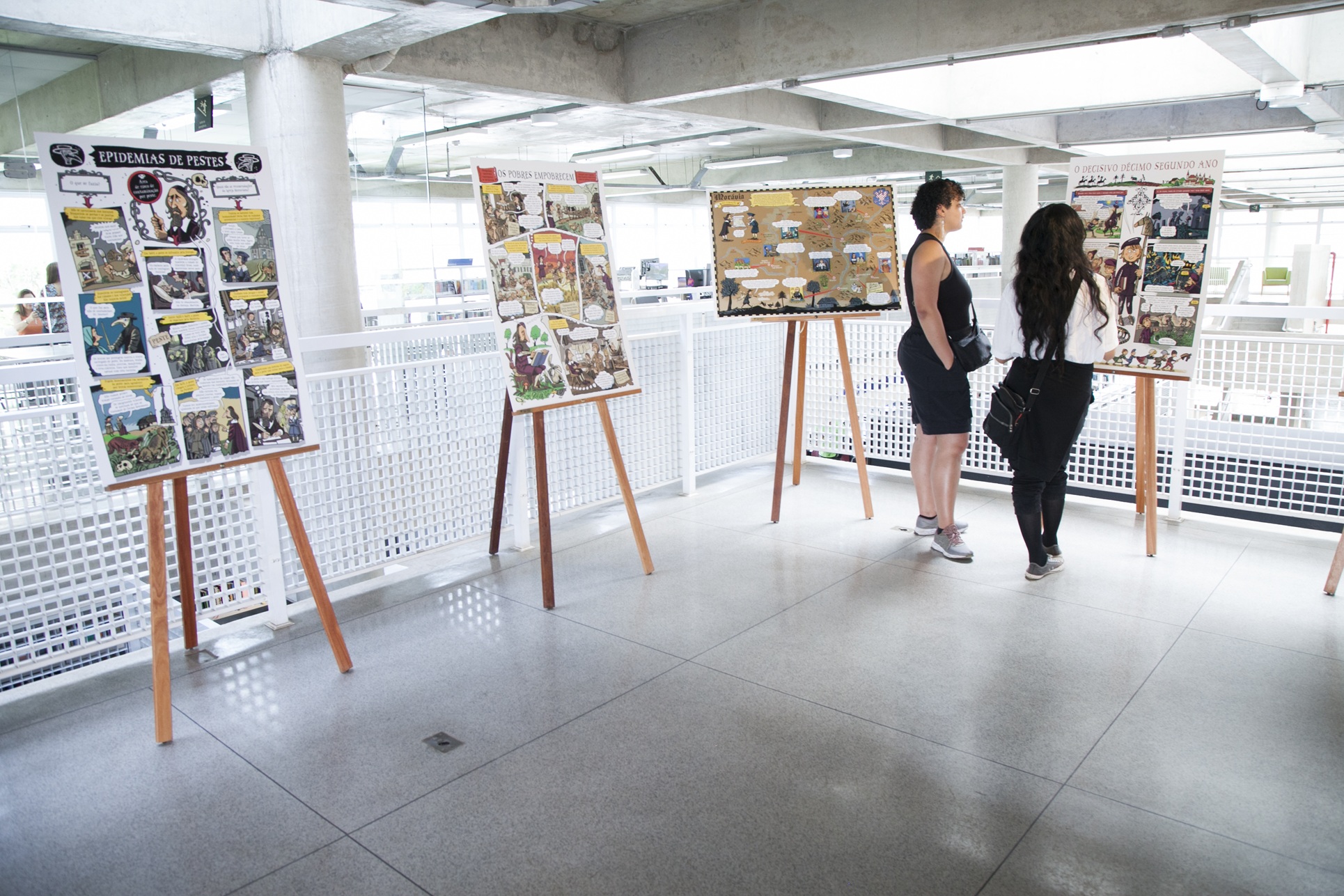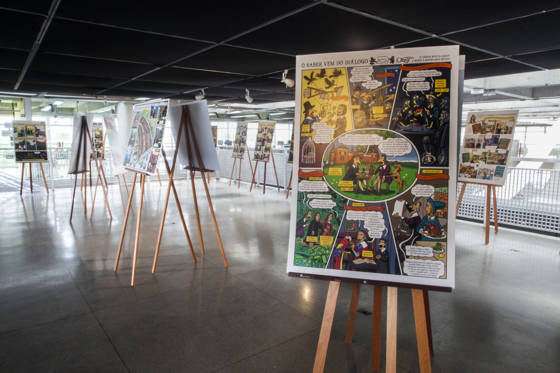 Výstava Komenský v komiksu, kterou jsem připravila pro Národní pedagogické muzeum, putuje po světě. Aktuálně je k vidění v saopaulské knihovně Biblioteca Parque Villa-Lobos, kde díky překladu do portugalštiny od začátku oslovuje i místní publikum. Součástí instalace jsou doprovodné programy pro děti i odborné přednášky. Velké díky patří Věře Matysíkové, která panely s nadšením přeložila a celý projekt v Brazílii zorganizovala, a také Lukášovi Fibrichovi, který komiksy překladu přizpůsobil.