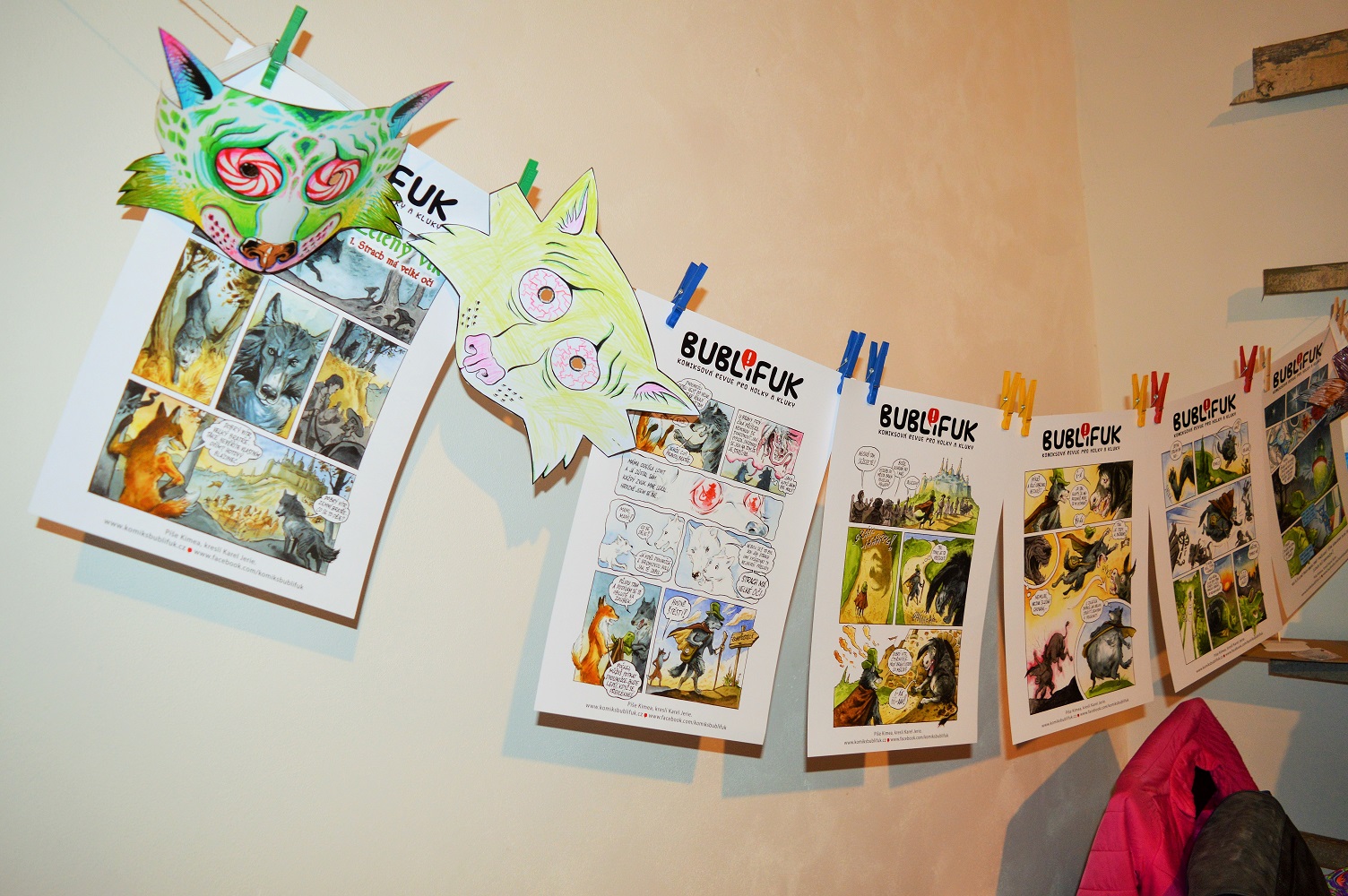 30 panelů formátu A3 s ukázkami komiksů od autorů přispívajících do komiksové revue Bublifuk