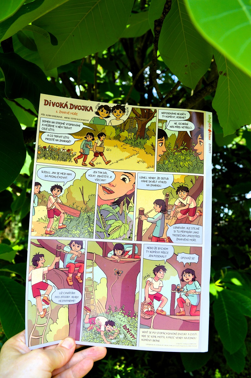 Měli jste jako děti domeček na stromě? A přáli jste si ho? Vendy s Robinem si ho postaví. Jen kdyby kolem něj nerostly kopřivy... Komiks Divoká dvojka podle mého scénáře kreslí Ester Kuchynková a na zadní straně obálky otiskuje časopis Ahoj divočino!
