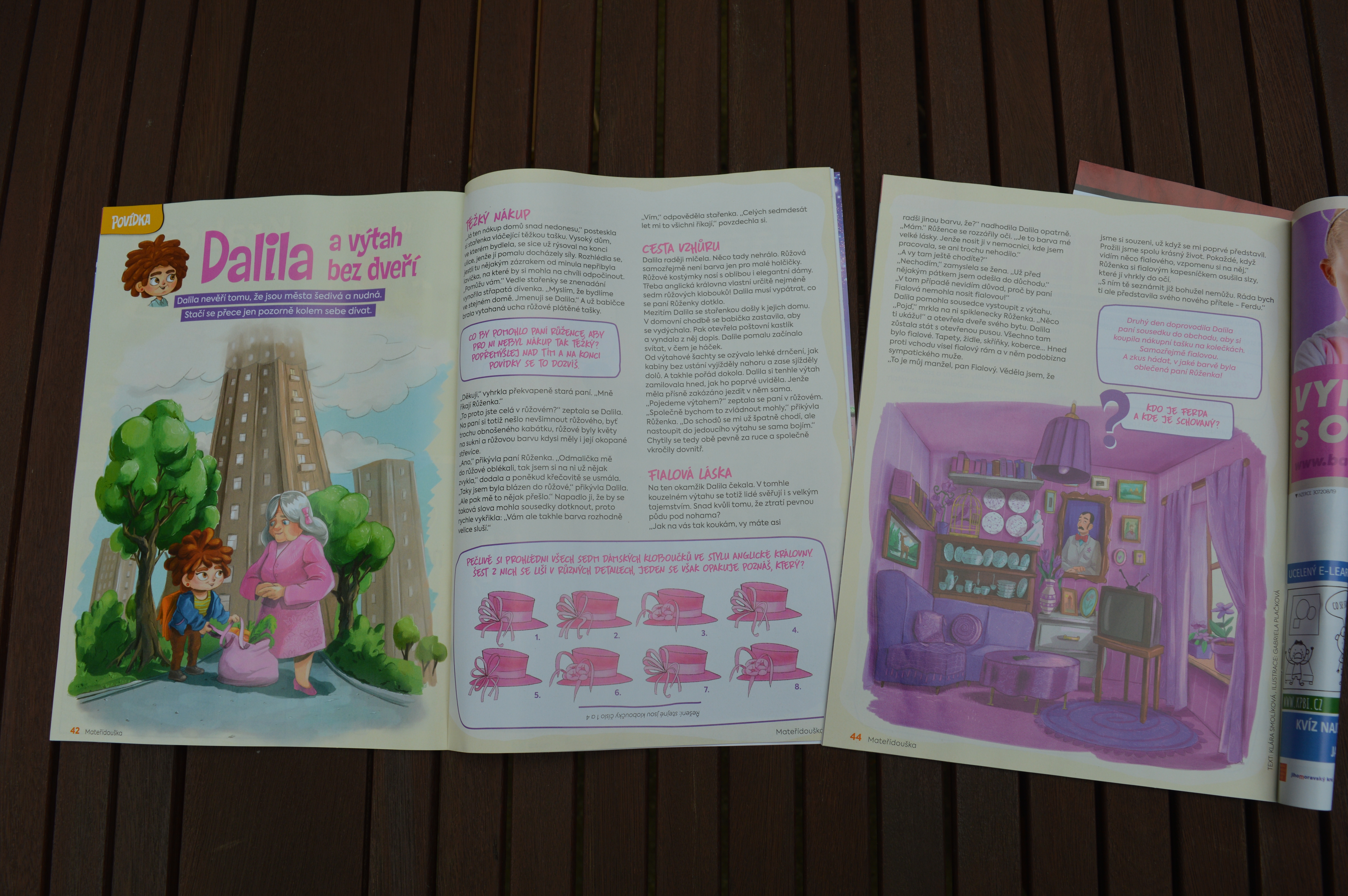Druhý díl vyprávění ze série Dalila a výtah bez dveří jsem nazvala Dáma v růžové a najdete ho v říjnovém vydání časopisu Mateřídouška. Ilustruje Gabriela Plačková. Mateřídouška Gabriela Plačková