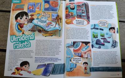 V zářijové Mateřídoušce otiskli první díl příběhu na pokračování, který píšu pod krycím názvem Expresní vesmírná zásilkovna. První část se jmenuje Ukradená raketa a svede dohromady potřeštěného malého kosmonauta Noriho s nerudným Gryfonem, který zásilkovou meziplanetární službu provozuje. Čtenáři se dočtou i něco z historie objevování vesmíru a do příběhu se mohou dokonce zapojit. Ilustrací se ujal Martin Hanschild.