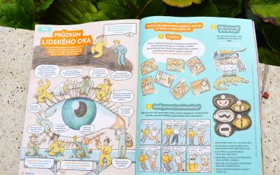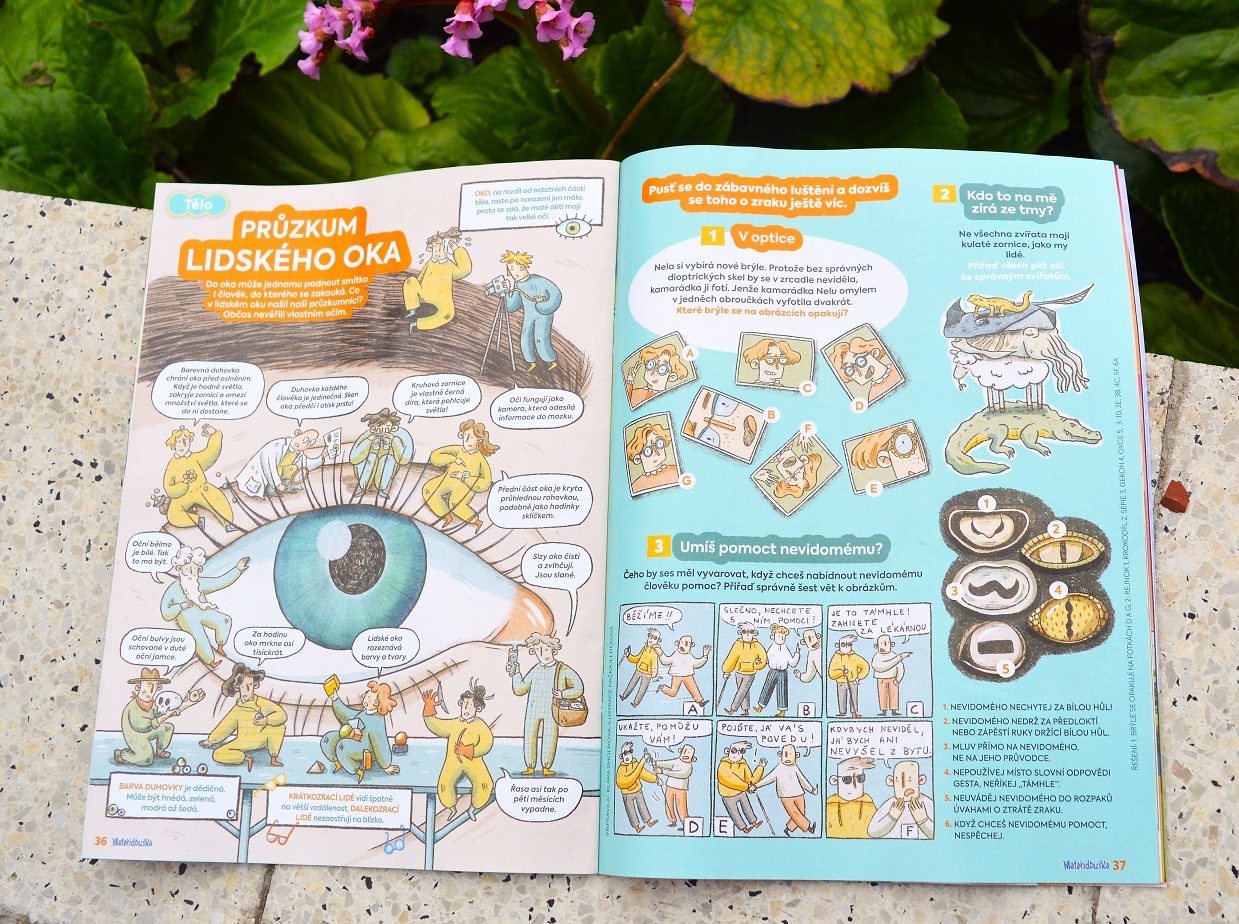 Do květnové Mateřídoušky jsem přispěla dalším dílem ze série o lidském těle. Společně s ilustrátorkou Kačkou Illnerovou jsme prozkoumaly oko. Tedy naše drobní spolupracovníci ho změřili, popsali a vyzpovídali. Mateřídouška Kačka Illnerová
