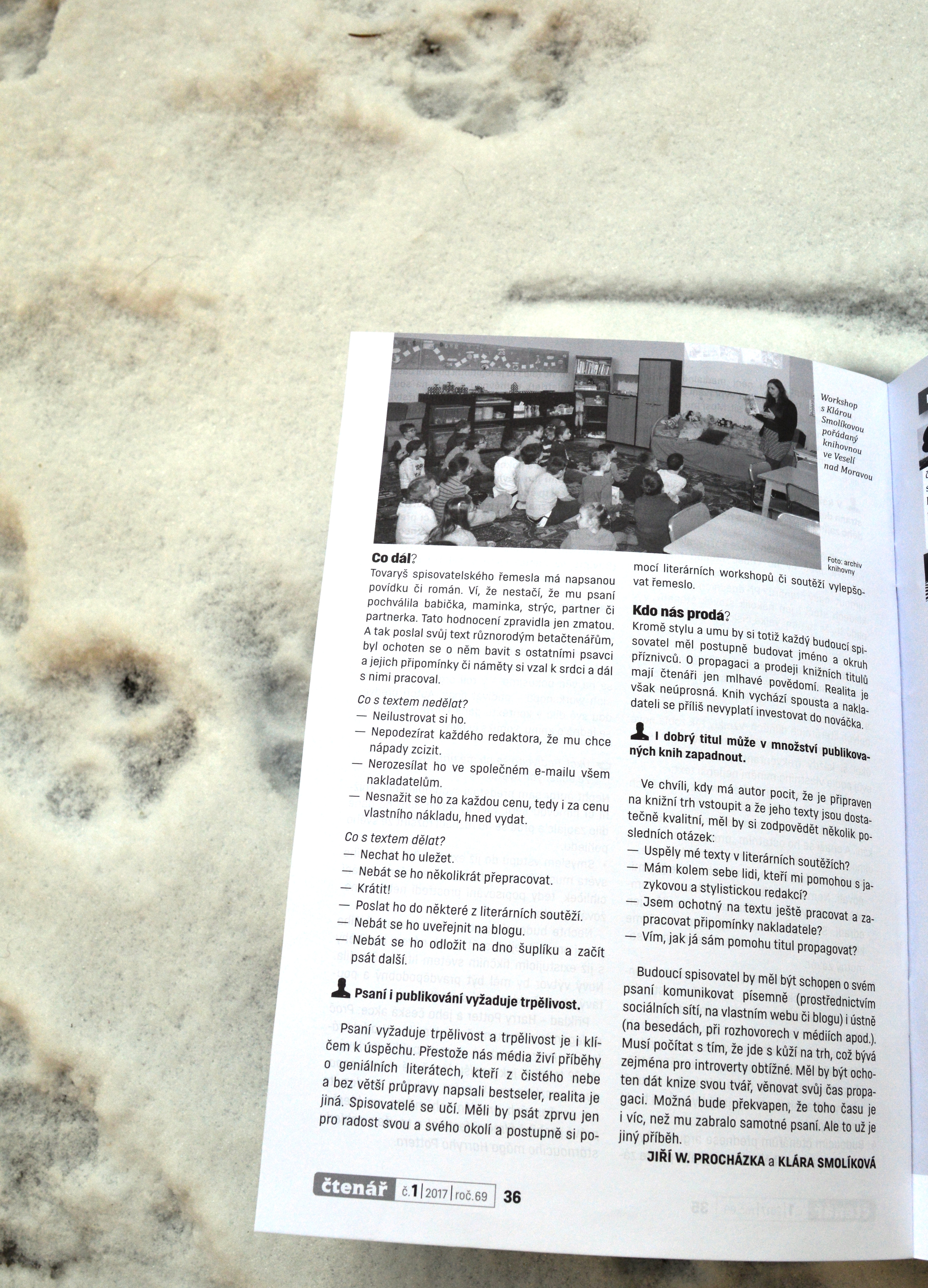 V prvním čísle Čtenáře v roce 2017 vyšel desátý a tedy poslední díl rubriky Válka Walkerových aneb Jak vyzrát na literární workshopy. S Jiřím W. Procházkou jsme se snažili přetavit naše zkušenosti z vlastního psaní, ale především z pořádání dílen tvůrčího psaní v sérii článků, které by pomohly knihovníkům při vedení literárních workshopů. Aktuální lednový článek, kterým celoroční rubriku uzavíráme, nese název "Proč vůbec psát?"