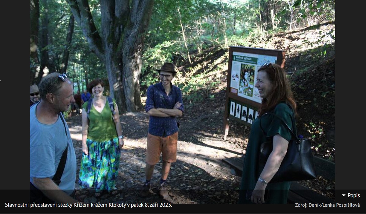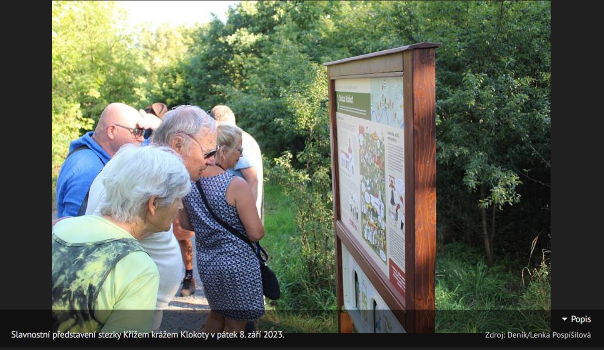 Na cestě Tismenickým údolím od historického mostku mohli lidé v pátek 8. září potkat partu nadšenců. Ti vyrazili na slavnostní otevření stezky Křížem krážem Klokoty se samotnými autory. „Je to moc hezké, generově vyvážené, hravé, vtipné a zábavné. Nechybí historická fakta a regionální zajímavosti. Jen spisovatel Hašek není Josef, ale Jaroslav,“ odhalil chybičku v textu jeden z účastníků výpravy.