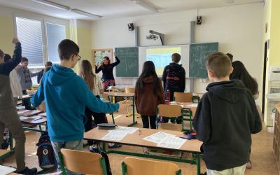 V úterý 8. 3. navštívila naši školu autorka komiksových příběhů Klára Smolíková. Zavítala do 7. D v rámci projektu Mluvíme v bublinách, který podporuje čtenářskou gramotnost. Během dvou vyučovacích hodin pronikli žáci prostřednictvím skvělých pracovních listů do světa komiksů. Na vlastní kůži si vyzkoušeli, co tvorba komiksů obnáší, a zjistili, že to není vůbec snadná práce. Jednotlivým postavám dokreslovali obličeje podle zadaných emocí, vymýšleli dialogy či předváděli, jak mohou komiksoví hrdinové prostřednictvím mimiky a gest vyjádřit smutek nebo radost. Seznámili se rovněž s historií komiksu, nezapomněli zmínit nejznámější český komiks Čtyřlístek a někteří zjistili, že i my máme svého komiksového hrdinu z období protektorátu – Péráka.