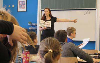 Víte, jak se dělají komiksy? My už to (trochu) víme! V úterý 26.3. 2019 k nám do školy přijela paní spisovatelka Klára Smolíková a pod jejím vedením jsme si vyzkoušeli, jak komiks vzniká. Dozvěděli jsme se, jak se dají pomocí obrázků vyjádřit emoce, pohyby nebo zvuky a co všechno se dá u komiksu pokazit.