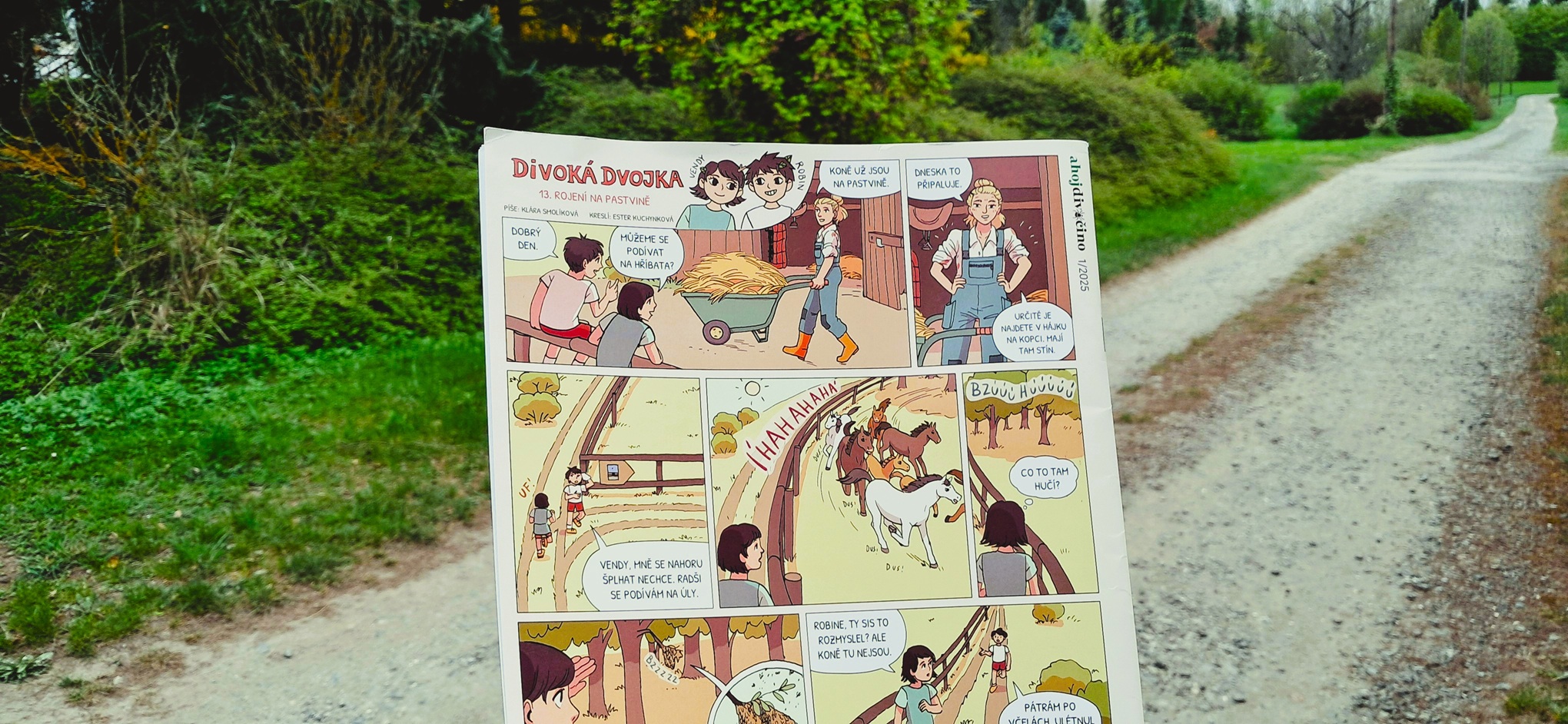 Chtěla jsem jarní číslo časopisu Ahoj, divočino vyfotit s koníky, které míjím ve výběhu, když se vydám po téhle cestě na procházku. Jenže už tam nejsou, už se pasou kdesi na pastvině. Tak jsem komiks, který připravujeme s Ester Kuchynková na zadní stranu obálky, vyfotila aspoň s tou cestou.