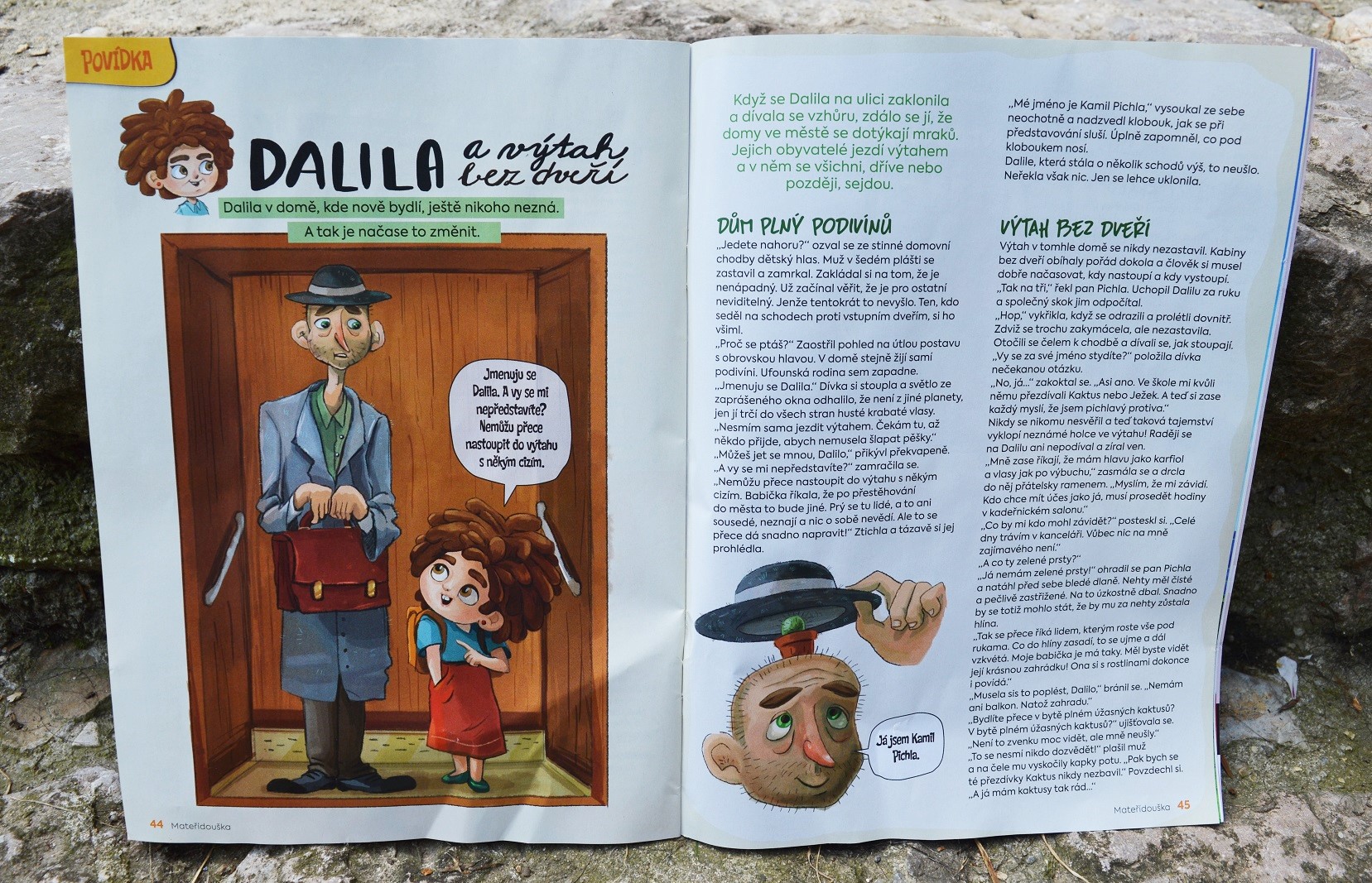 Dalila a výtah bez dveří, tak se jmenuje nové čtení na pokračování, se kterým se od září budou dětští čtenáři potkávat v časopise Mateřídouška. V prvním díle s podtitulem Kaktusový král se seznámíme s holčičkou Dalilou, která se nedávno přistěhovala do města. Ilustruje Gabriela Plačková.