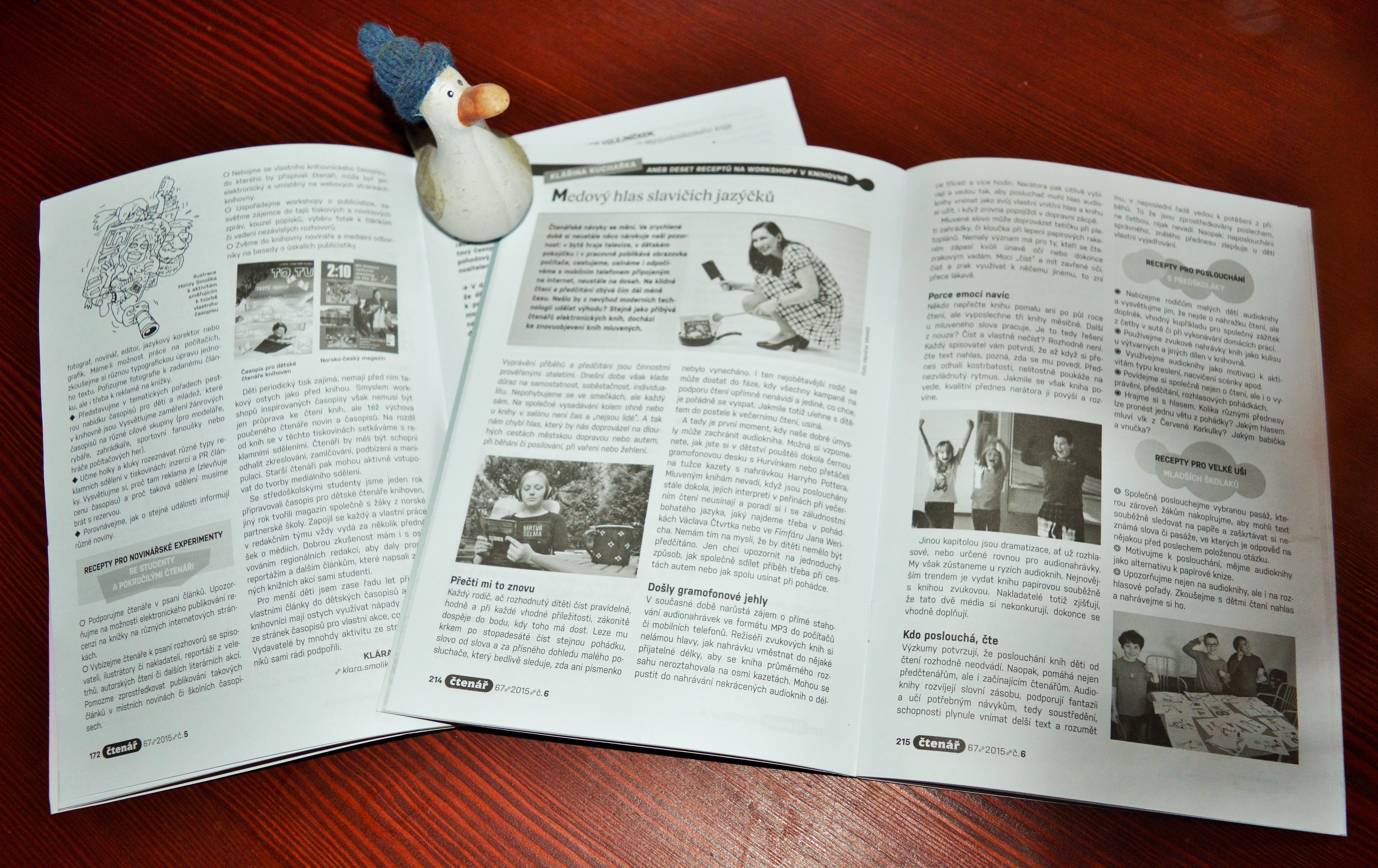 V květnovém knihovnickém časopise Čtenář vyšel třetí díl rubriky Klářina kuchařka aneb deset receptů na workshopy v knihovně, který se věnoval práci s časopisy a novinami. Pokračování v aktuálním červnovém čísle se jmenuje "Medový hlas slavičích jazýčků" a nabádá knihovníky k většímu zájmu o audioknihy.