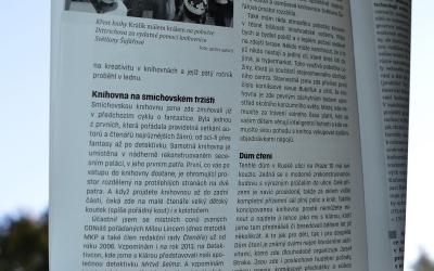 Smíchovskou knihovnu jsme zde zmiňovali již v předchozím cyklu o fantastice. Byla jednou z prvních, která pořádala pravidelná setkání autorů a čtenářů nejrůznějších žánrů: od sci-fi přes fantasy až po detektivku. Samotná knihovna je umístěna v nádherně rekonstruovaném secesním paláci, v jeho prvním patře. První, co vás po vstupu do knihovny dostane, je ohromující prostor rozdělený na protilehlých stranách na dvě patra. A když projdete knihovnou až do zadní části, čeká zde na malé čtenáře velký dětský koutek (spíše pořádný kout) i s kolotočem.