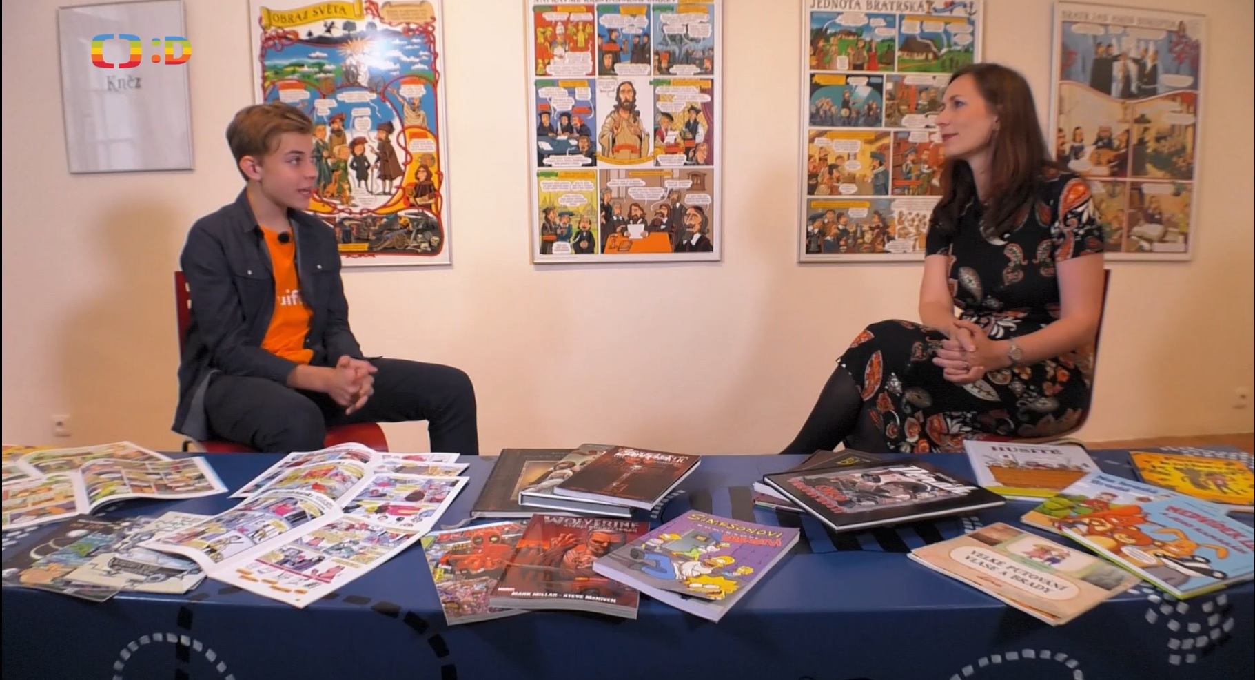 Na výstavě Komenský v komiksu v Národním pedagogickém muzeu se natáčel jeden ze vstupů pořadu Wifina. Moderátor Milda měl vyřídilku jako já, takže jsme si skvěle notovali. Premiérové vysílání 11. září jsem nějak zaspala, ale pořad si můžete pustit z archivu České televize.