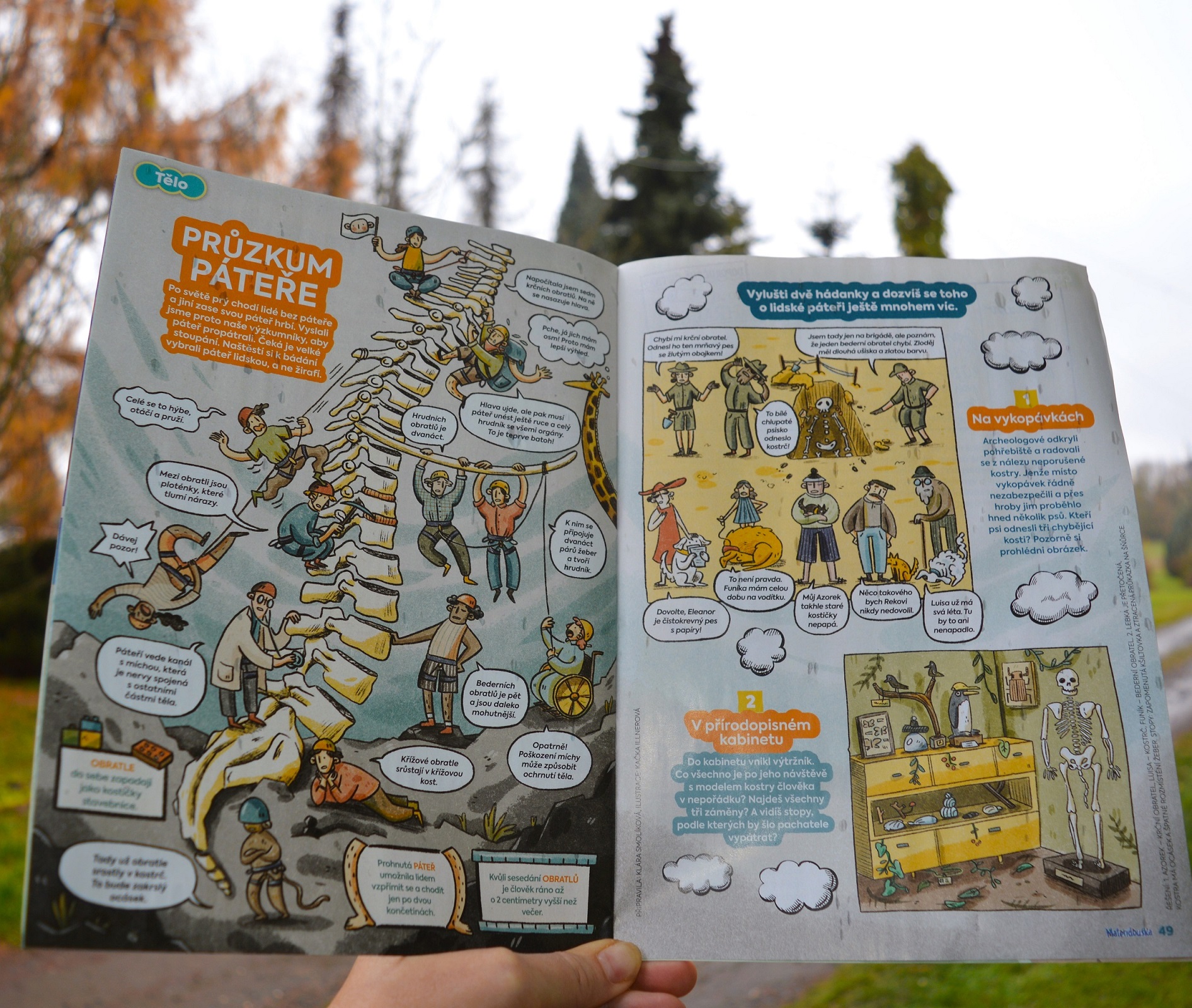 Dnes si připomínáme státní svátek Den boje za svobodu a demokracii a Mezinárodní den studentstva. Skvělý den, kdy bychom měli s dětmi mluvit o tom, co znamená mít rovnou páteř. A něco ze zákulisí obratlů najdete také v listopadové Mateřídoušce, v rubrice Průzkum lidského těla, kterou píšu a kreslí Kačka Illnerová.