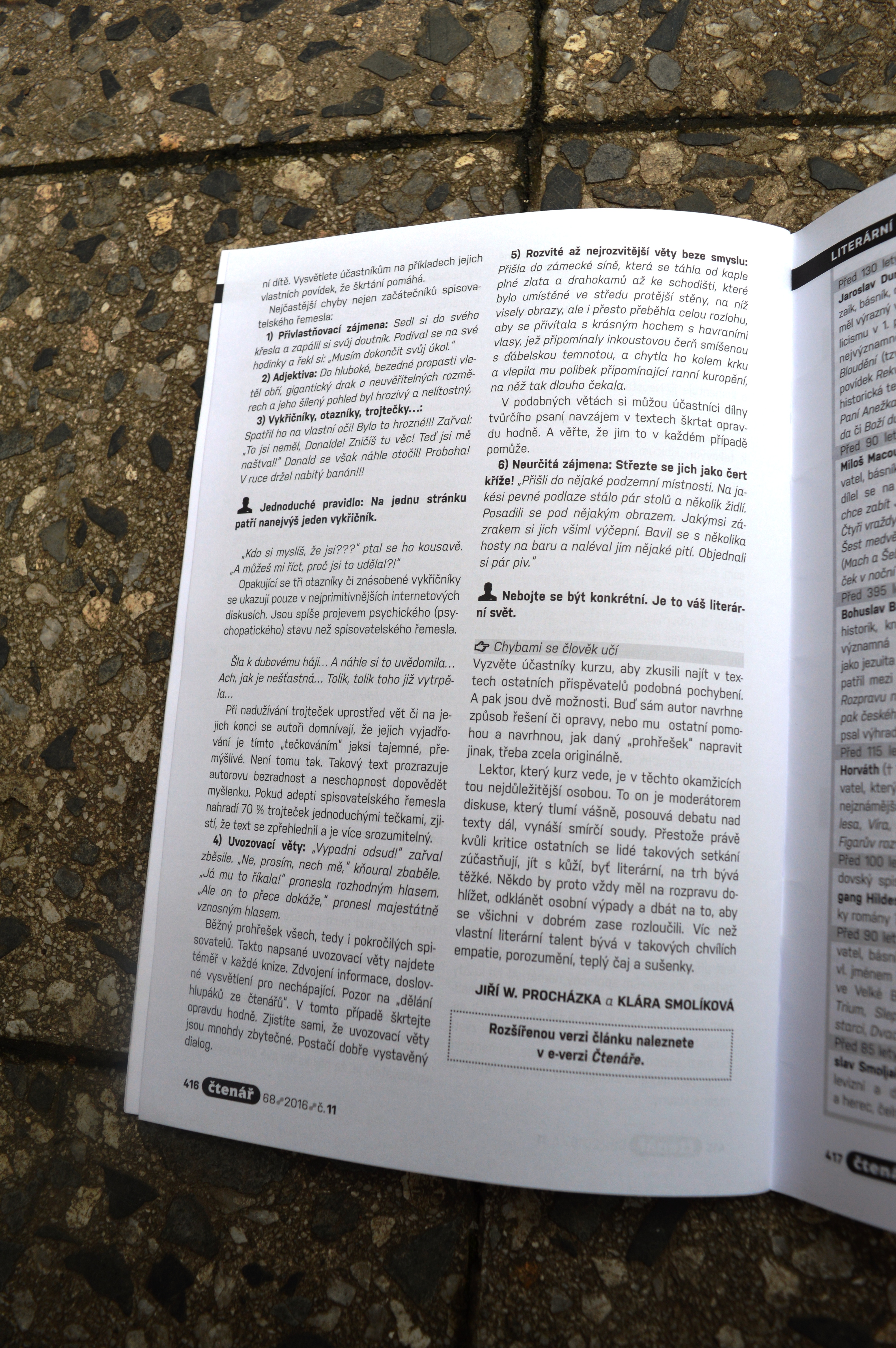 Vyšlo listopadové číslo Čtenáře a v něm najdete již osmé pokračování rubriky "Válka Walkerových aneb Jak vyzrát na literární workshopy". Tentokrát nese podtitul Nejčastější chyby při psaní a nemyslíme tím s Jiřím W. Procházkou rozhodně chyby pravopisné.
