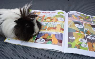 Nebylo jednoduché přesvědčit Punkyho, aby zapózoval s novým časopisem Tečka. Kromě mnoha skvělých rubrik a článků zde najdete první díl komiksu Morčata v akci. Jmenuje se Útěk ze zverimexu a kreslí jej Ester Kuchynková. A proč to nebylo jednoduché? Protože morče pořád utíkalo.