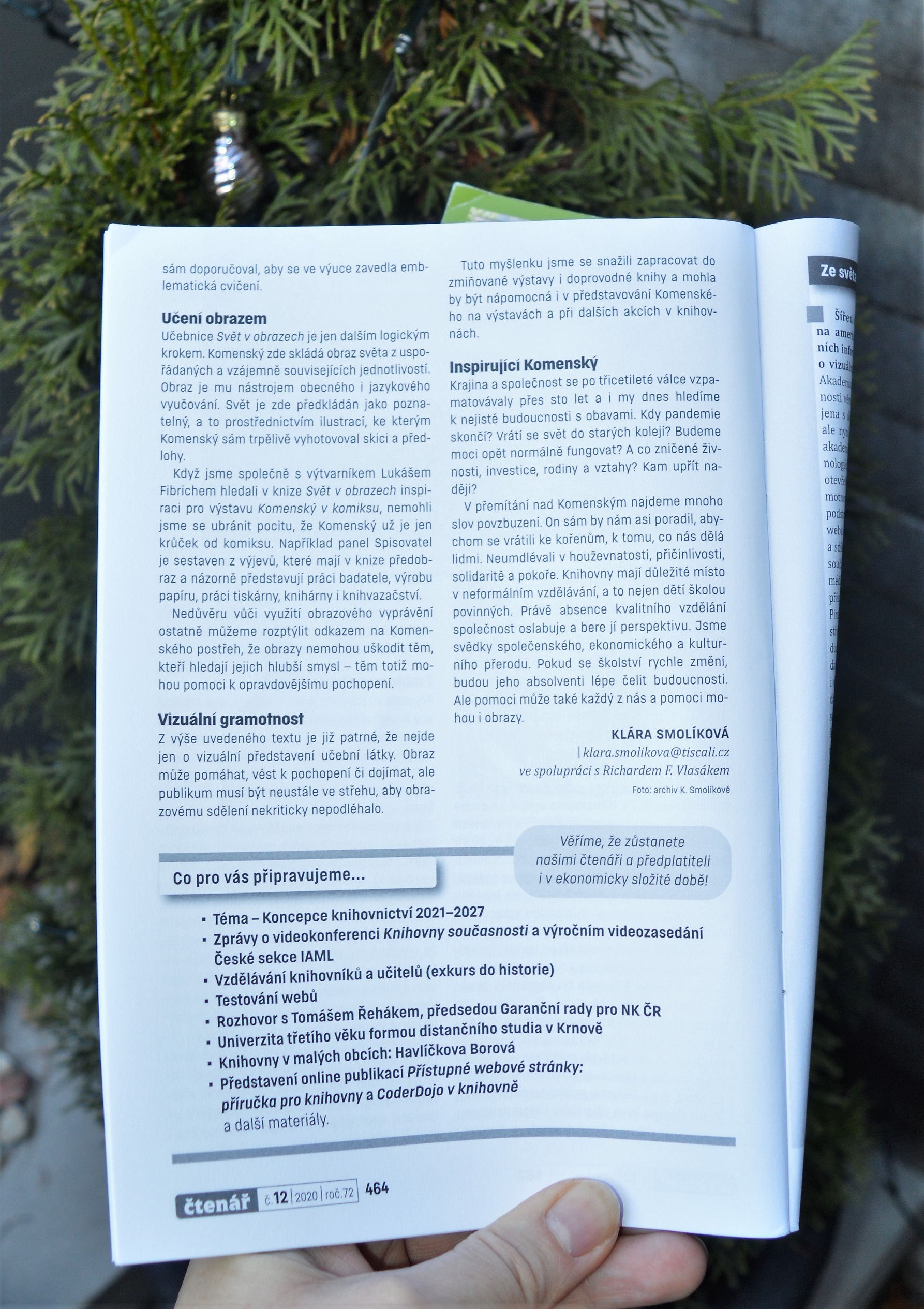 S letošním rokem jsme se rozloučili textem "Obrazy světa a svět v obrazech", který otiskl knihovnický časopis Čtenář jako pátý závěrečný díl miniseriálu "Putování ve šlépějích Jana Amose Komenského". Takovým článkům vždy předchází dlouhý konspirační telefonát s Richardem Vlasákem, protože myšlenky je nejprve třeba vykřesat mezi slovy. A to i když jde o obrazy.