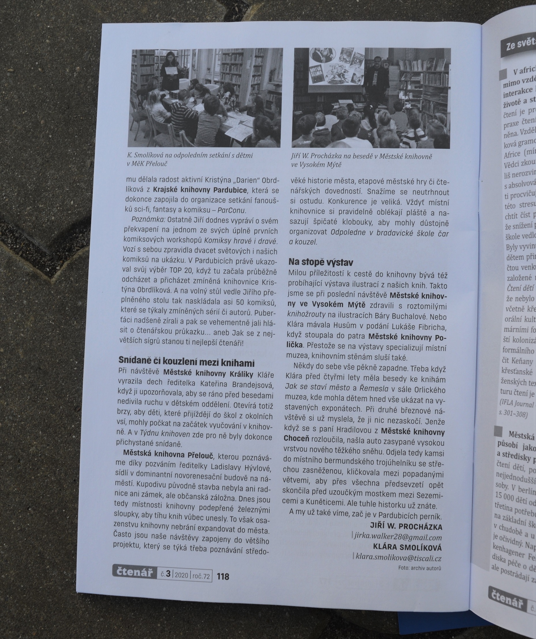 Třeba skvěle se doplňující dvojka – Jana Hlaváčová, ředitelka Městské knihovny Žamberk, a Martina Wilhelmová z dětského oddělení, která zároveň vede kurzy trénování paměti. Dvě milé, inteligentní a skromné dámy, které nad každou novou informací popřemýšlejí a rozhodně si nenechají proklouznout mezi prsty nápady, jež by jejich čtenáři ocenili. Jiří to vždy testuje na otevřenosti pro komiksy a fantastiku. Proto mu dělala radost aktivní Kristýna „Darien“ Obrdlíková z Krajské knihovny Pardubice, která se dokonce zapojila do organizace setkání fanoušků sci-fi, fantasy a komiksu – ParConu.
