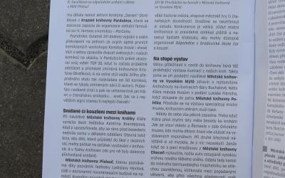 Poslední díl cestopisu uveřejňovaném v časopisu Čtenář se věnuje knihovnám Pardubického kraje. V rubrice jsme s Jiřím zúročili postřehy z několika let, kdy navštěvujeme knihovny po celé republice. Je ironií osudu, že po odeslání posledního příspěvku do redakce se knihovny uzavřely. Doufejme, že to není na dlouho.