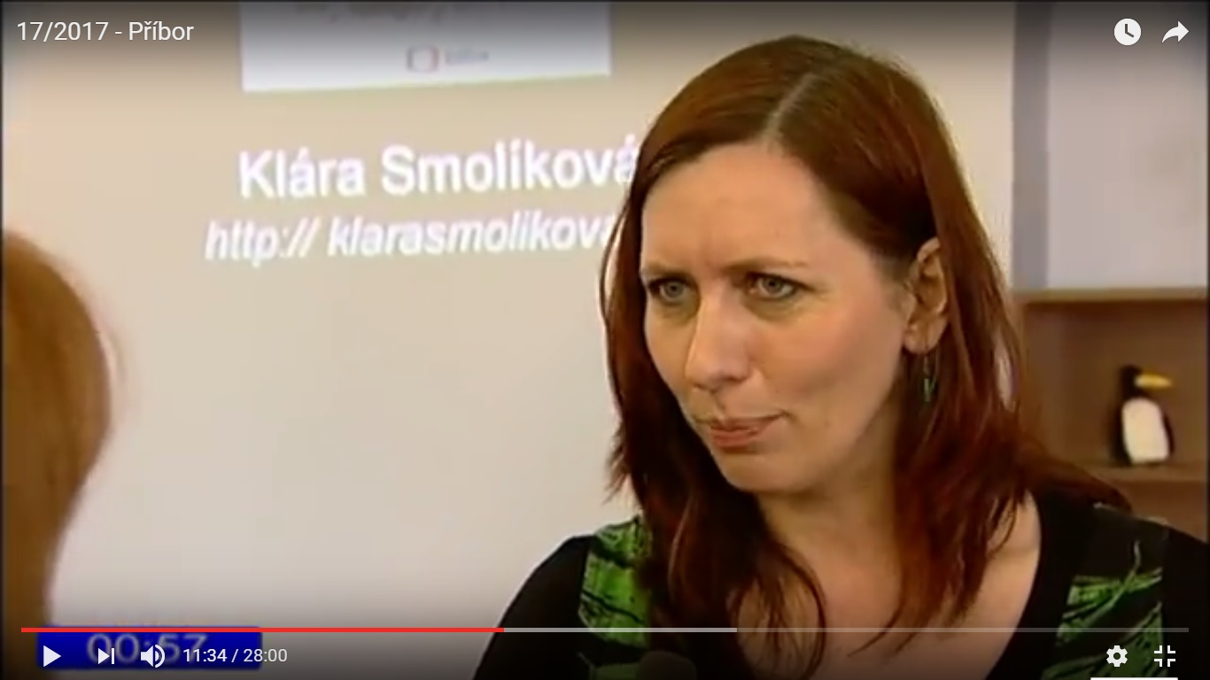 V pátek 31. března navštívala Klára Smolíková příborskou knihovnu se třemi čtenářskými programy. Hravého dopoledne se zúčastnila i příborská televize. Reportáž z knihovny můžete zhlédnout od 9. minuty v týdenním bloku zpráv z regionu.