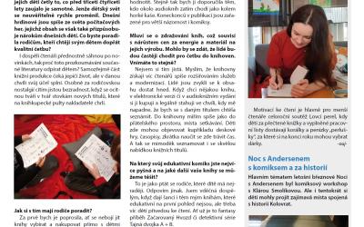 Kolovratský zpravodaj uveřejnil rozhovor, který se mnou vedla Blanka Oujezdská, knihovnice kolovratské knihovny. Týká se zejména komiksu, protože komiksový workshop během Noci s Andersenem prý děti mimořádně zaujal.