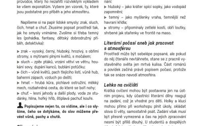 Napíšeme si na papír lidské smysly: zrak, sluch, čich, hmat a chuť. Zkusíme popsat prostředí tak, jak ho smysly vnímáme. Zvolíme si třeba temný les (pohádka, fantasy, dětský dobrodružný příběh, detektivka):