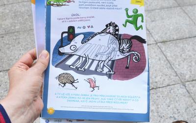 Srpnové Sluníčko přináší opět dvě mé rubriky. Zauzlovaný jazýček chameleona Egona bude tentokrát pátrat po dvou významech slova zebra. Ilustruje Aňos, která se nebojí nakreslit i jazyk utíkající před rozumem. Děda Česlav vezme vnučku Timejku i malé čtenáře na rozhlednu, tedy dokonce na dvě rozhledny. Nebo spíš na jednu rozhlednu dnes a pak ještě před sto lety. Seriál Kdysi a dnes nakreslil Martin Hanschild.