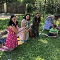 Ozkoušeno během dvouletého projektu "Cesty potravin – strava globálně a lokálně", který realizoval Vzdělávací institut Středočeského kraje. Německým partnerem projektu byla Společnost pro sociální rozvojovou spolupráci GSE z Rostocku. V širším projektovém týmu jsme pro mateřské školy zpracovali manuál, přispěli materiálem i konkrétní pomocí, aby se děti znovu naučily rozumět, odkud jídlo pochází a jak se zpracovává. Pilotního ověření vzdělávacích programů se účastnily 4 mateřské školy ze Středočeského kraje. Já jsem se zaměřila na potravinářská řemesla a vytvoření názorného vzdělávacího programu „Rok ve školní zahradě“. Měsíc po měsíci jsme mapovali, co holčičky a kluky na zahradě čeká, co kdy zasadí, vyplejí či sklidí. Na setkáních s dětmi jsme pak vymýšleli příhody devíti zahradníků. Moc jsme si to všichni užili a věřím, že díky této knize se vášní pro zahradničení nakazí i další drobotina.