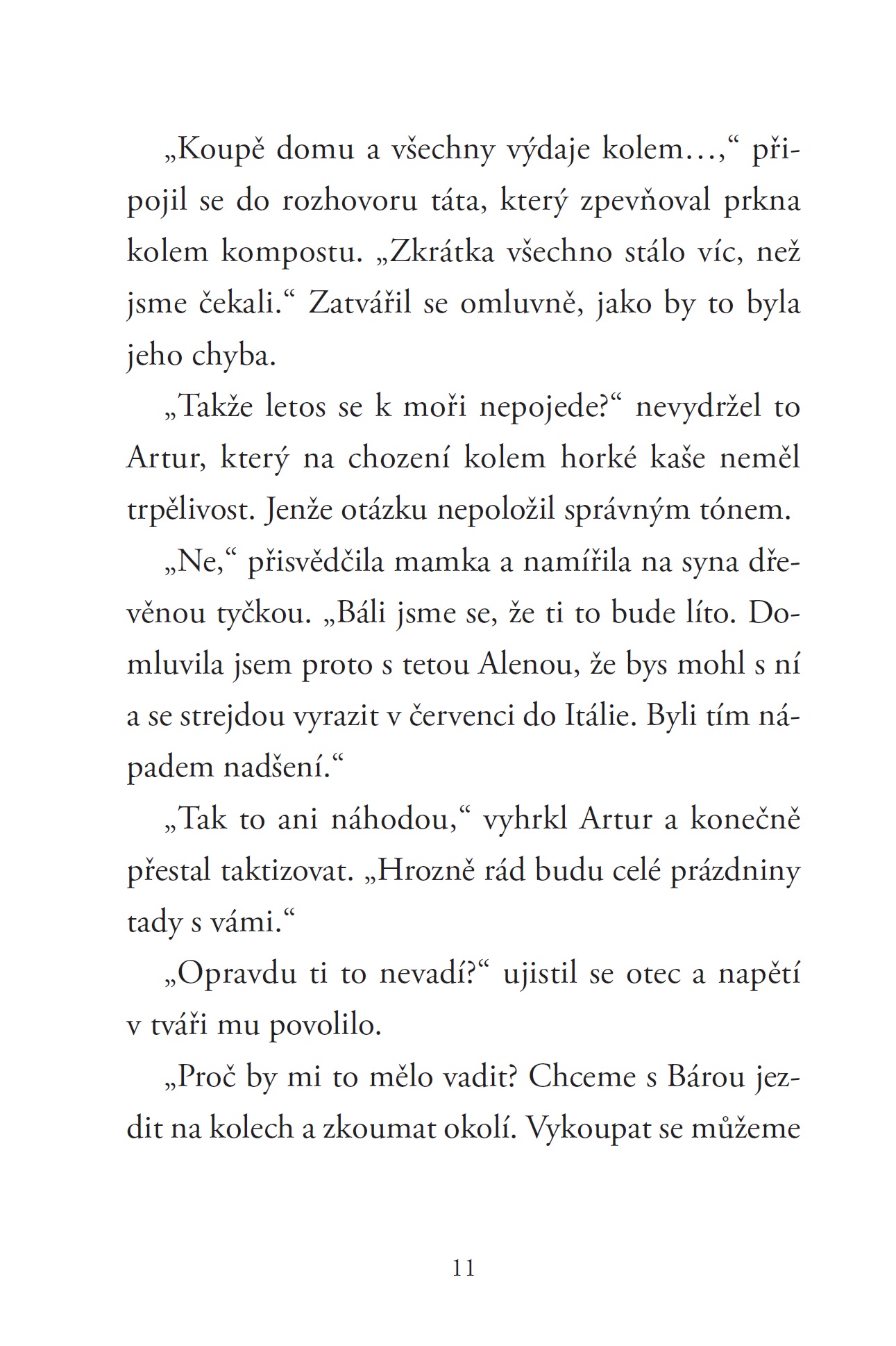 A Vám dospělým bych snad jen vzkázal – pokud by snad Vaše dítě chtělo, abyste jim z knihy četli – nebojte se toho. V jedné scéně říká pan Vrchota svému kolegovi, že už téměř zapomněl na svá dětská léta, ale že právě dvojice mladých detektivů mu pomáhá při vzpomínání, jaké to bylo být obyčejným klukem. A tak si možná i Vy díky této oddychové knížce rádi zavzpomínáte na ten krásný čas, kdy celé léto bylo před Vámi a kdy – jak se zpívá v jedné známé písni – svět byl fajn, svět byl náš.