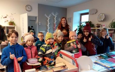Nový rok jsme v knihovně zahájili výstavou a besedou s paní spisovatelkou Klárou Smolíkovou, která nám představila pár knih ze své bohaté literární tvorby. Zároveň dětem hravou formou vysvětlovala různé pojmy, které se pojí s knihami a se čtenářstvím. Děti to tak chytlo, že jsme se dlouho loučili s paní spisovatelkou. Na památku děti dostaly záložku a časopis a kdo chtěl, koupil si i knihu s věnováním od paní spisovatelky. Moc děkujeme za vše a třeba zas někdy. Výstava KNIHOŽROUTI od paní Smolíkové u nás běží do 24. ledna, tak se někdy zastavte.