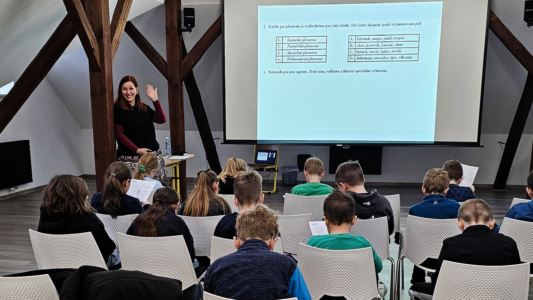Naši školu navštívila známá spisovatelka paní Klára Smolíková. Přivezla s sebou ukázky svých knih, které si zájemci mohli na místě zakoupit, a to i s osobním věnováním autorky. Děti ze tříd 3. A a 3. B byly nadšené, že se setkaly se skutečnou spisovatelkou. Během besedy o jejích knihách padlo mnoho zvídavých a originálních otázek. Program poté pokračoval detektivní dílnou Tajná dvojka A + B, která prověřila, zda žáci dokážou číst mezi řádky a správně rozluštit stopy vedoucí k odhalení zločinu.