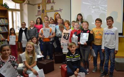 Městská knihovna Horšovský Týn v říjnu vystavuje ilustrace a komiksy od Viktora Svobody k sérii Tajná dvojka A + B. Při té příležitosti jsem se sem rozjela na besedy. Dnes jsme detektivně pátrali s páťáky, zítra dorazí tři třídy čtvrťáků. Výstava Tajná dvojka