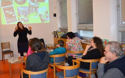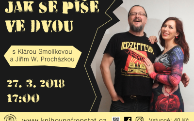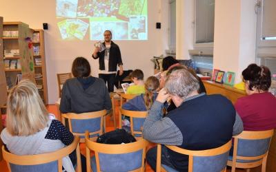 Koncem března jsme zamířili na Moravu a kromě dopoledních workshopů s dětmi jsme se večer setkali s dospělými čtenáři, v úterý 27. 3. ve frenštátské knihovně a o den později, ve středu 28. 3. v bílovické knihovně.