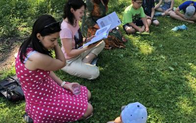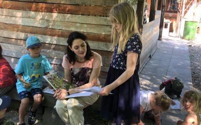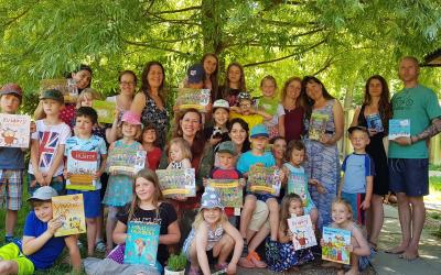 V pátek 18. června se slunce rozpálilo a město se stalo téměř neobyvatelným. Kdo mohl, utíkal do stínu parku, lesa či zahrady. My jsme se vypravili na palouk do Xaverovského háje, kde v hájence na palouku našla útočiště lesní škola a školka. S dětmi jsem se viděla už jednou, kdy jsem sem před víc než rokem zavítala s programem ke knize Začarovaný Hvozd. Teď jsme tu s malými čtenáři, ale také zahradníky přivítali novinkovou knihu Devět malých zahradníků: Rok ve školní zahradě. Kmotrou byla herečka a zahradnická víla Klára Issová.