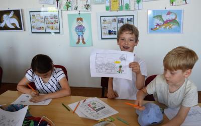 Teď už byste měli být připravení na úkol největší – vymyslet a vytvořit vlastní komiks! Na papír si předkreslete komiksová políčka, z vystříhaných černobílých postaviček si sestavte scény a promyslete, co by mohly postavy říkat. Pak už stačí dokreslit bubliny, nalepit postavičky a vše parádně vybarvit.