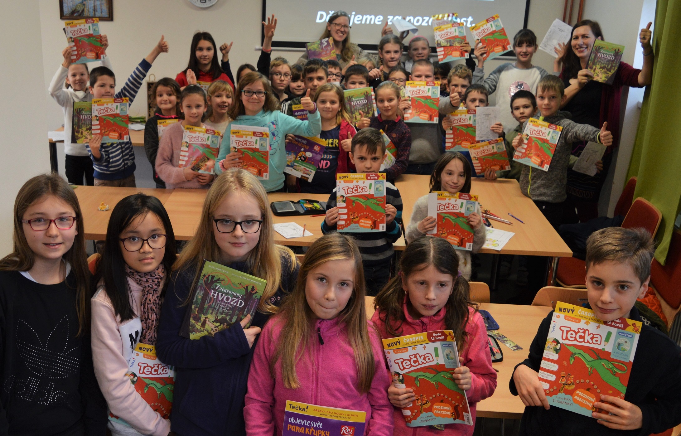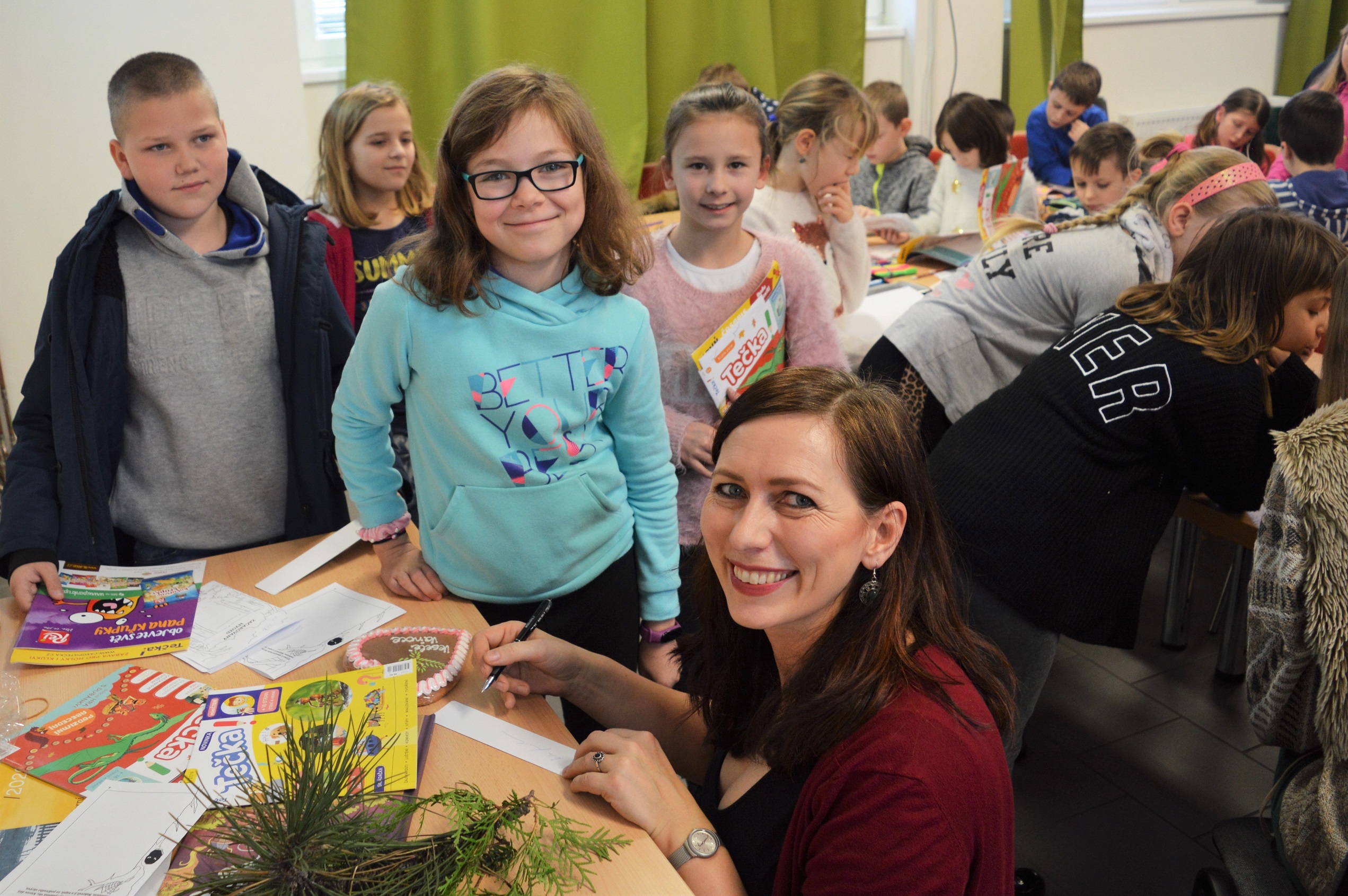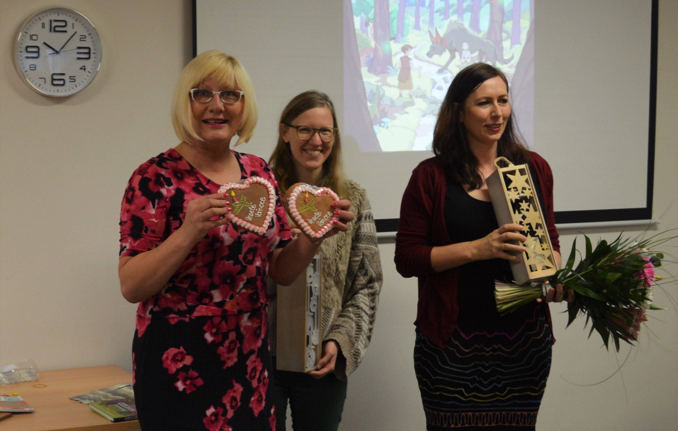 Chcete-li se s Bolechem a Lunou vydat do hlubin Hvozdu, kde přebývají lesní duchové, je pátek třináctého ideálním dnem. Proto jsme se 13. prosince sešli v knihovně Horních Počernic, abychom slavnostně uvítali knihu Začarovaný Hvozd: Příběh dětí s Končiny. Kmotra Alena Štrobová, starostka Horních Počernic, metličkou z větví jehličnanů knížku postrčila do světa mezi čtenáře. Spolu s ilustrátorkou Ester Kuchynkovou jsme dětem, které se křtu zúčastnily, představily nejen knížku, ale i naše další projekty. Potom se holčičky a kluci pustili do vytváření vlastní knížky. Program, který jsem nově zařadila do nabídky besed, je tedy úspěšně ozkoušený.