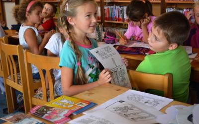 V pondělí 26. září 2016 jsem přijala pozvání z turnovské knihovny a uspořádala zde dva hravé čtenářské workshopy pro druháky, kteří před prázdninami dostali mou knížku Knihožrouti. Taková milá setkání jsem teď v září měla i v dalších knihovnách – v Jablonném v Podještědí či Železném Brodu. Jsem ráda, že dětem zároveň mohu představit dvě novinkové knihy – Čertici Dorku a Králík málem králem, které se hodí pro druhé čtení. Děti, které zaujaly komiksové ilustrace Báry Buchalové v Knihožroutech, zase s chutí seznamuji s komiksovou knihou Na hradě Bradě, Viktorkou nebo komiksovou revue Bublifuk.