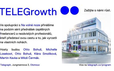 Ve spolupráci s Na volné noze Roberta Vlacha přináší olomoucký Telegraph sérii přednášek s debatami. Postupně se zde představí úspěšní nezávislí profesionálové – Otto Bohuš, Martin Kavka, Michelle Losekoot, Miloš Čermák, kteří představí svou cestu, jak vyrostli na vlastních nohách. Setkání se mnou, které je naplánováno na středu 4. prosince od 17:30, šňůru hvězdných hostů uzavírá. Po takových skvělých předřečnících se mi asi budou klepat kolena, tak mě přijďte podpořit.