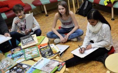 edit"Autorské čtení s Klárou Smolíkovou" se konalo v pondělí 11. prosince 2017 v Centru kolegiální podpory v ZŠ Chrast. Tématem bylo využití komiksů, ale také toto setkání s učiteli pěkně navázalo na předchozí program ve čtenářském klubu, který se na škole pravidelně schází.