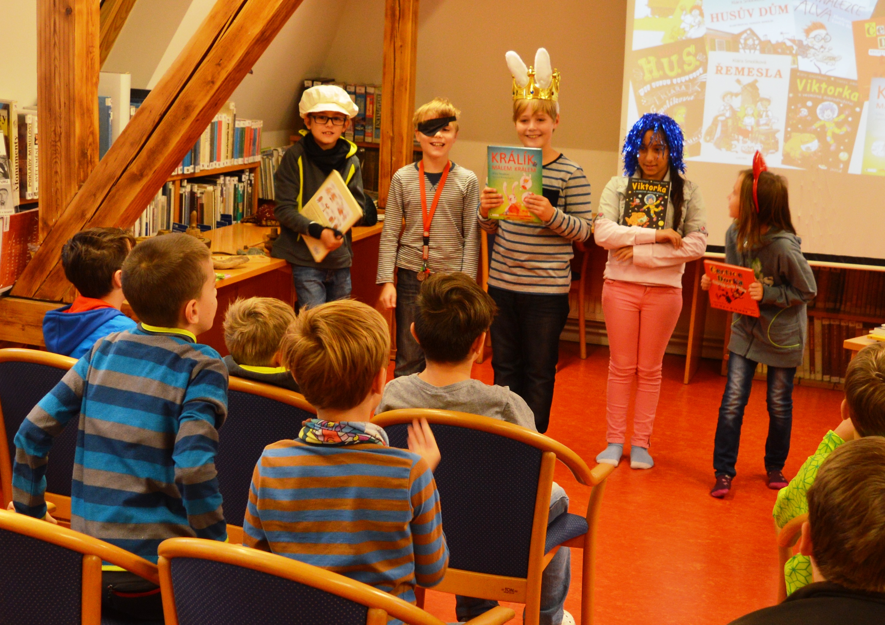 Beseda /nejen/ o řemeslech byla krásně připravená. „Jů, tady je televize“, zaznělo udiveně sálem. Představila se nám paní Klára Smolíková - dětská spisovatelka a její kolega Jiří Walker Procházka - český spisovatel science fiction a fantasy. Byly nám představeny její knihy pro děti, komiksy, tématika, např. Králík málem králem, Čertice Dorka, Na hradě Bradě, Vynálezce Alva, Bublifuk... a další. Kniha Řemesla nás zaujala. Bavilo by vás být ve mlýně „práškem“ a jen ometat mlýn? My jsme se hodně naučili. Dozvěděli jsme se, která starodávná povolání jsou dodnes známá, padaly pojmy jako mlynář, pekař, řezník, pak i méně známé – sládek, bednář, tesař, uhlíř, soukeník....atd.