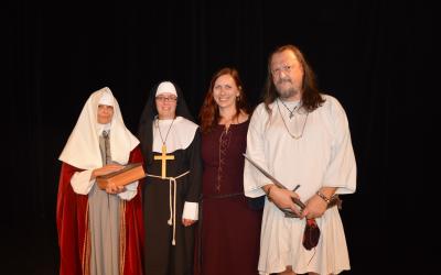 „ Ve středu 12.9.2018 byla naše třída na akci „Od svaté Ludmily k dnešku.“ Přivítala nás tam sama sv. Ludmila (berounská knihovnice), hradní paní (spisovatelka Klára Smolíková), pohanský kněz (spisovatel Jiří W. Procházka) a jeptiška Lucie (knihovnice). Byly tam čtyři třídy a čtyři stanoviště. Dozvěděli jsme se něco o životě sv. Ludmily, co se dělo na hradištích, něco o pohanských bozích a o našich svatých. Vždy když zazněl gong, tak jsme se přesunuli na další stanoviště do jiné místnosti. Moc se mi tam líbilo a bavilo mě to.“