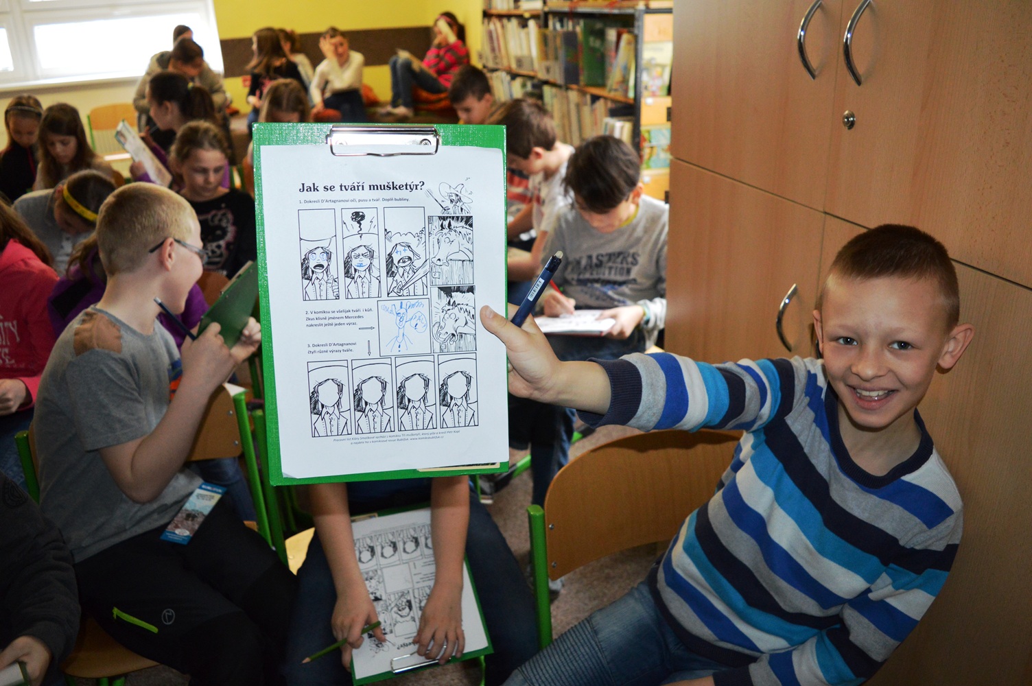 V pondělí 20. března jsme v knihovně přivítali milé hosty - spisovatelku, scenáristku a lektorku paní Kláru Smolíkovou a spisovatele a scenáristu pana Jiřího W. Procházku. Pro žáky 4. - 7. tříd připravili besedy s názvemJak se dělá komiks. Poutavý výklad byl doplněný zajímavými prezentacemi a výstavkou knih. Žáci se dozvěděli o historii komiksu, seznámili se s komiksovými hrdiny, s tím, jak komiksy vznikají i jak se např. komiks čte. V průběhu besedy pak sami žáci zkoušeli navrhnout a pojmenovat vlastní komiksové postavy, zamýšleli se nad využitím komiksových citoslovcí a piktogramů, nebo se mohli v komiksového hrdinu proměnit. Celý program byl velmi hravý a děti se nejen dozvěděly spoustu informací o komiksech, ale také se dobře bavily. Navíc si čtenáři mohou knihy obou spisovatelů v knihovně vypůjčit.