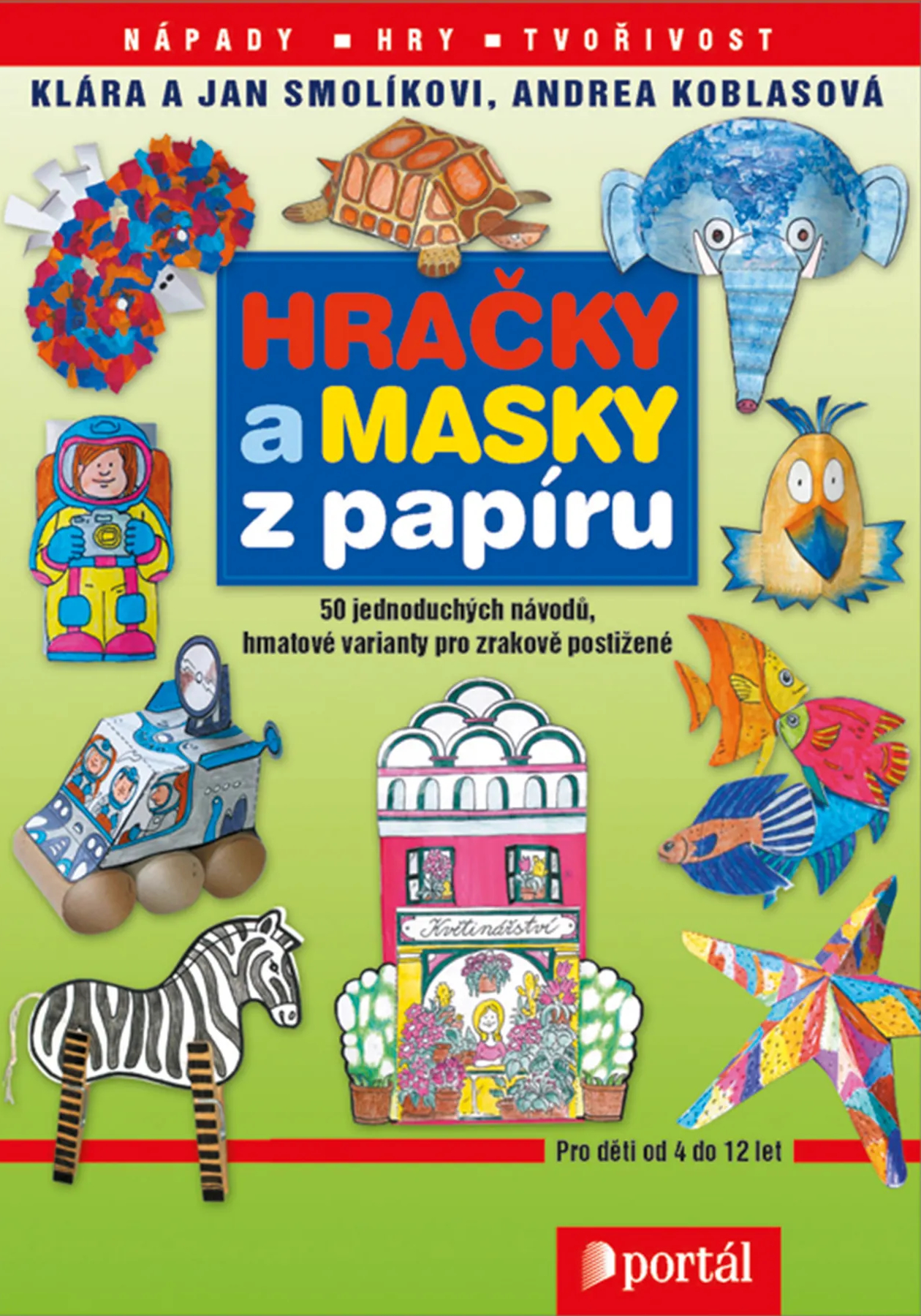 Vystřihovánky a další výtvarné techniky. Knížka je rozdělená do pěti kapitol - Město, Vesmír, Zoo, Divadlo a Moře, v nichž je připraveno celkem padesát předloh. Na začátku každé kapitoly jsou všeobecné pokyny, nápady na další využití v různých skupinách podle věku i některá doporučení, která platí pro většinu vystřihovánek kapitoly. Někdy budete kromě papíru potřebovat i jiný snadno dostupný materiál, jako jsou papírové krabičky, roličky, plata od vajec nebo plastové láhve. Podrobné pokyny k materiálům, nářadí i postupům najdete v kapitole Jak chytře na vystřihovánky. Pokud budete pracovat s dětmi zrakově postiženými, metodické poznámky i povídání o speciálních pomůckách k výtvarné práci najdete v kapitole Jak na to s krtkem. V závěru knihy také najdete tabulku Braillova písma.