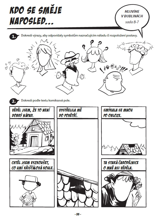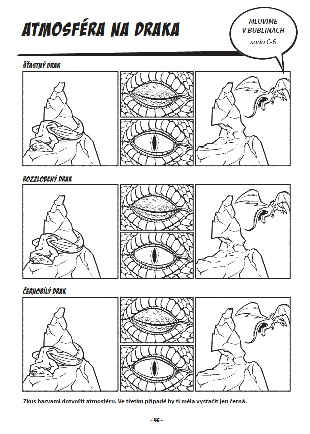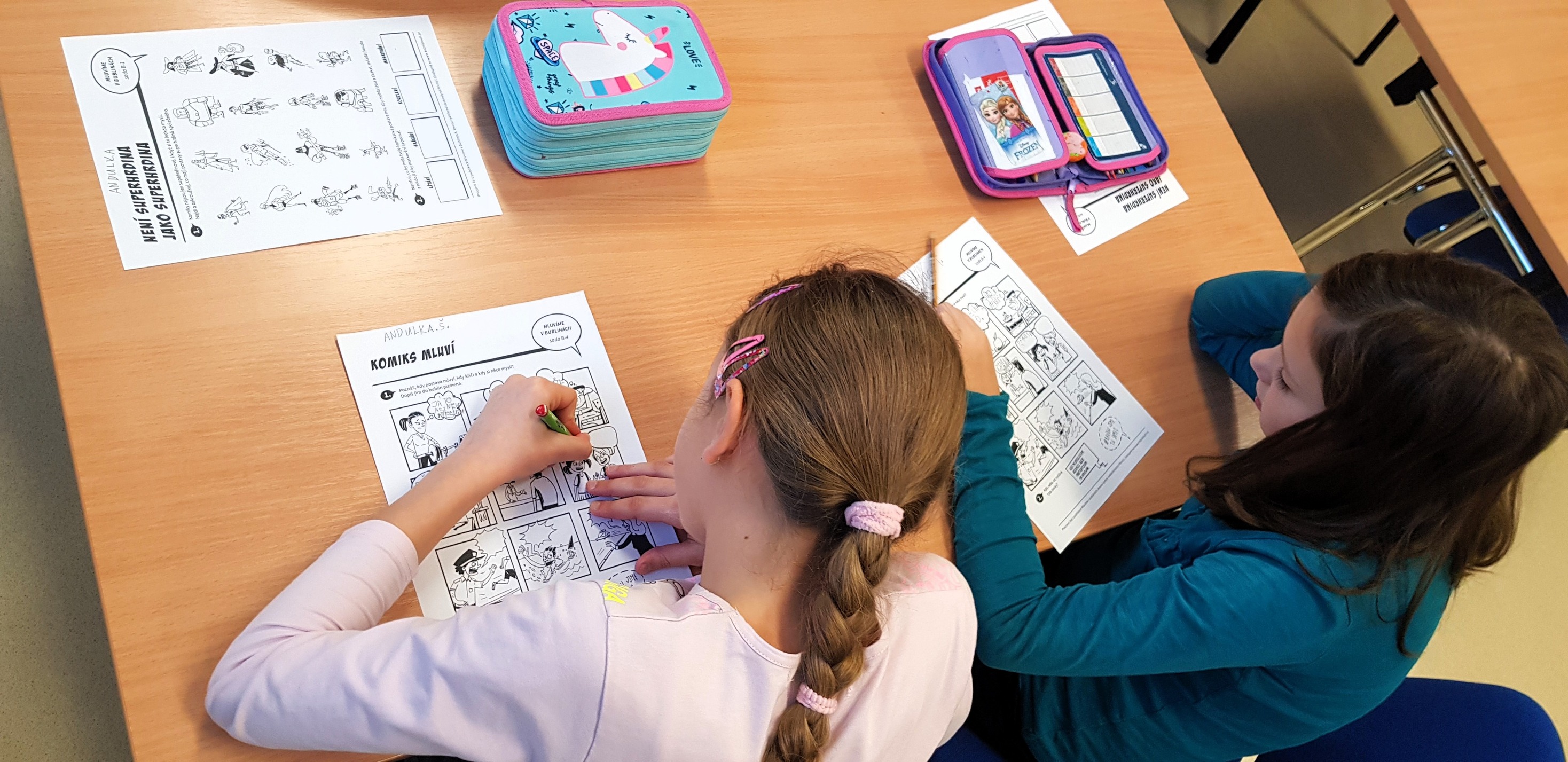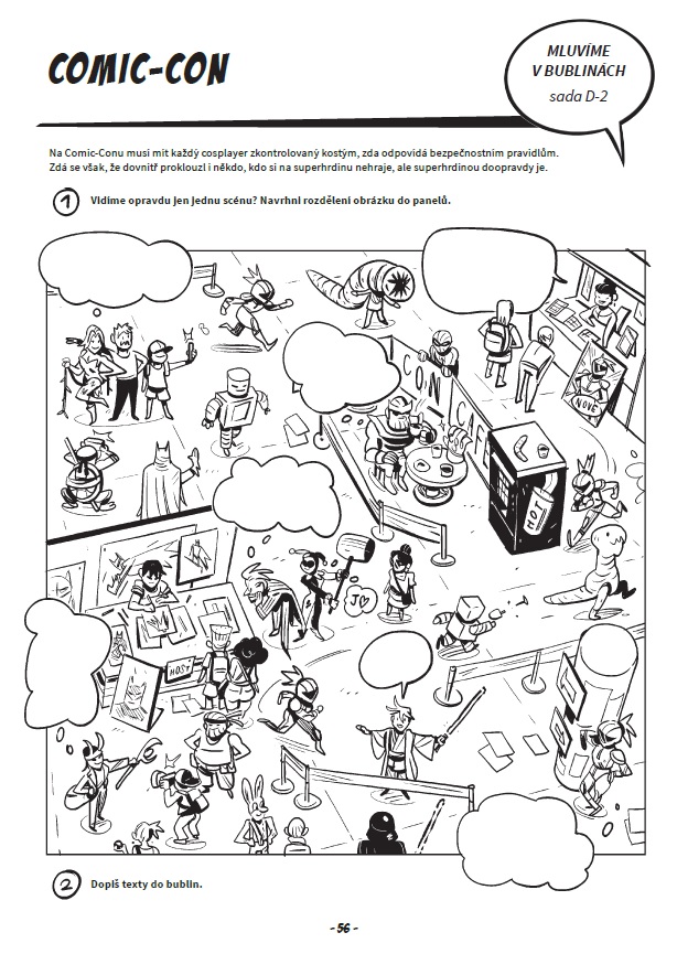 32 původních a na desítkách škol ozkoušených pracovních listů provede každého zájemce krok za krokem komiksem – od typů bublin až po šrafování v manga stylu. Vyzkoušíte si rozfázovat pohyb, přečíst řeč těla i navrhnout vlastního superhrdinu. Navštívíte Comic-Con, město budoucnosti nebo hradní zříceninu.