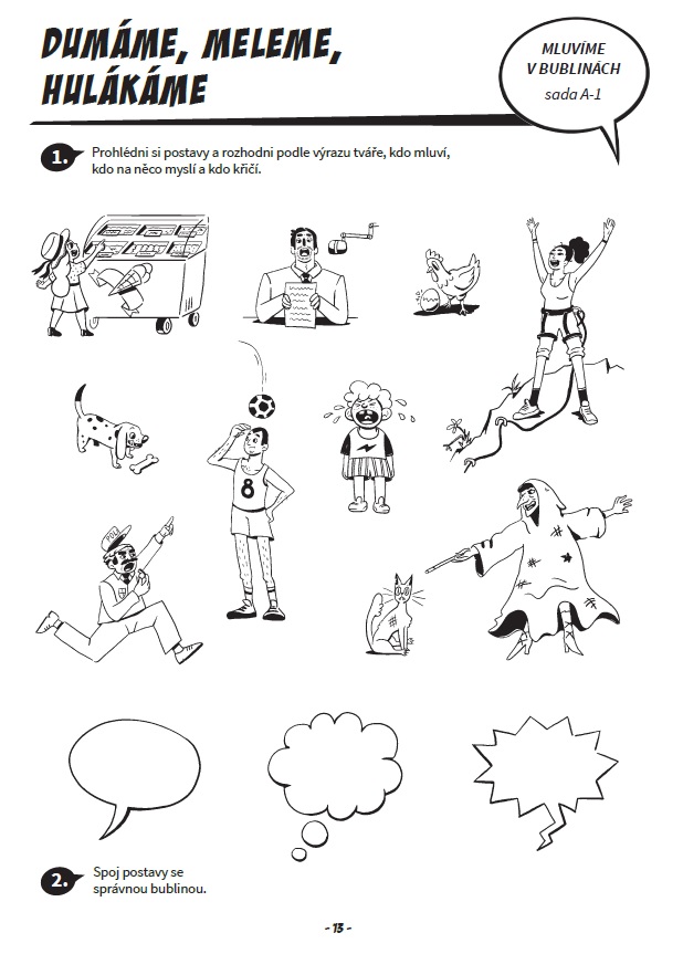 Mluvíme v bublinách je velmi praktická, zábavná i poučná příručka, která své místo najde jak v hodinách na školách, tak v různých kroužcích. Stejně oceňovaná bude i v domácí knihovničce nadšeného amatérského pisálka či kreslíře.