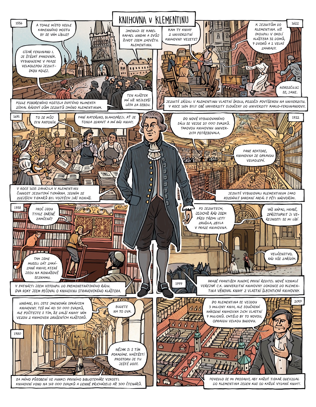 Příběh protkaný desítkami zajímavostí o knihách a lidech kolem nich doplňuje osm komiksů o našich nejvýznamnějších knihovnách.