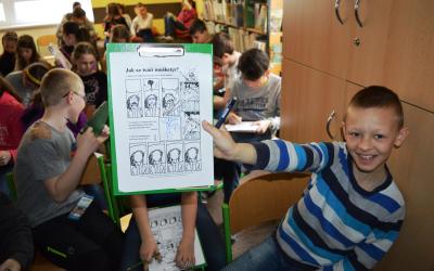 V pondělí 20. března jsme v knihovně přivítali milé hosty - spisovatelku, scenáristku a lektorku paní Kláru Smolíkovou a spisovatele a scenáristu pana Jiřího W. Procházku. Pro žáky 4. - 7. tříd připravili besedy s názvem Jak se dělá komiks. Poutavý výklad byl doplněný zajímavými prezentacemi a výstavkou knih. Žáci se dozvěděli o historii komiksu, seznámili se s komiksovými hrdiny, s tím, jak komiksy vznikají i jak se např. komiks čte. V průběhu besedy pak sami žáci zkoušeli navrhnout a pojmenovat vlastní komiksové postavy, zamýšleli se nad využitím komiksových citoslovcí a piktogramů, nebo se mohli v komiksového hrdinu proměnit. Celý program byl velmi hravý a děti se nejen dozvěděly spoustu informací o komiksech, ale také se dobře bavily. Navíc si čtenáři mohou knihy obou spisovatelů v knihovně vypůjčit.